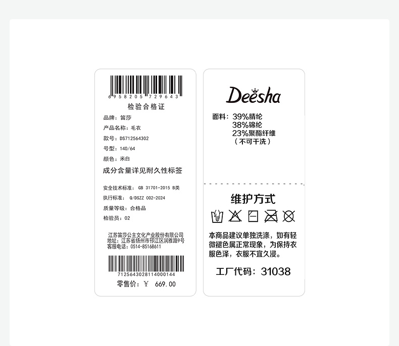 笛莎/Deesha 2026年春季新款女童弯刀牛仔裤