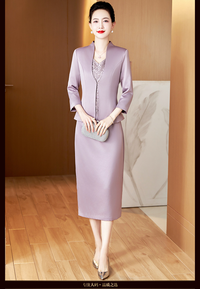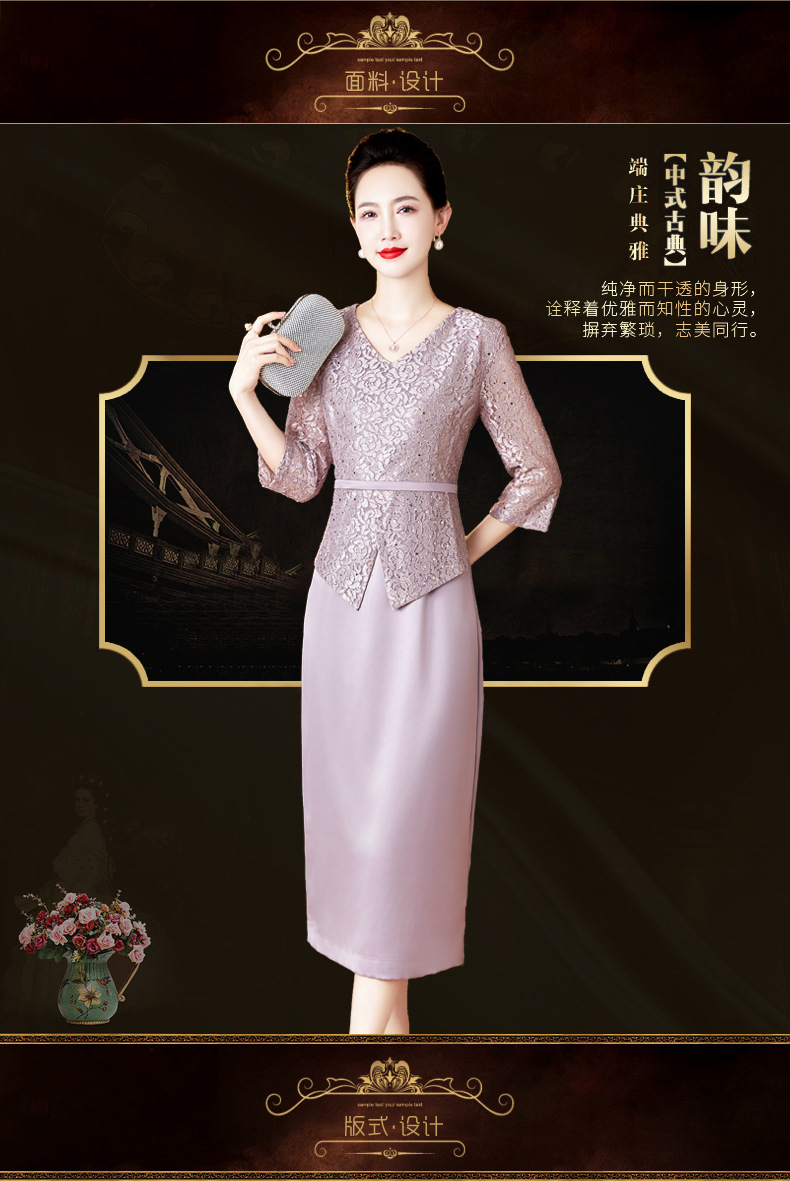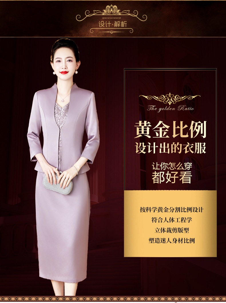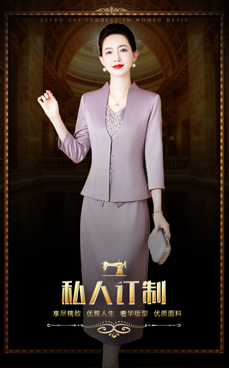 新款修身显瘦两件套遮肚喜婆婆礼服高贵优雅妈妈装婚礼套装裙LC-2390