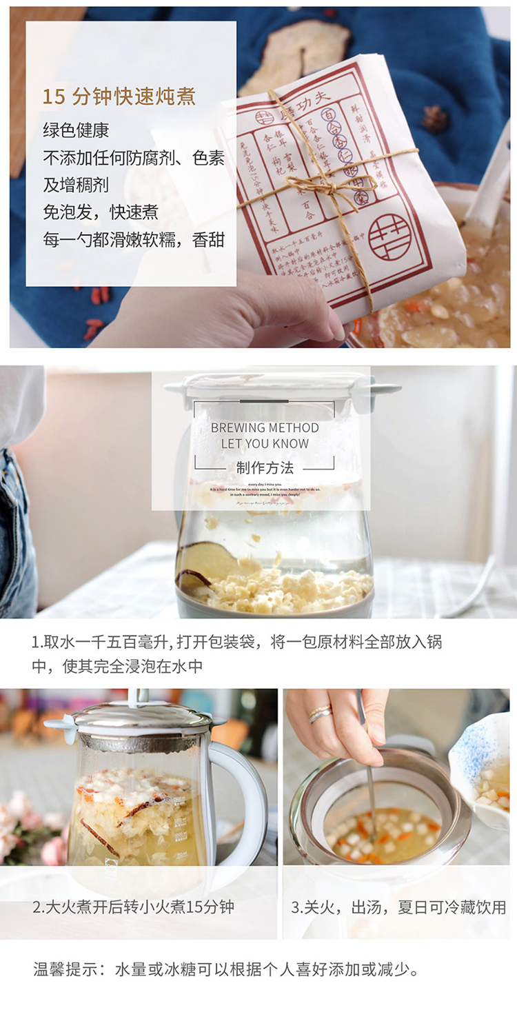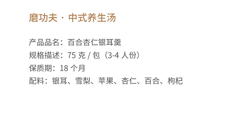 免洗免泡发的即吃即煮小甜汤 百合杏仁银耳羹75g/包*3