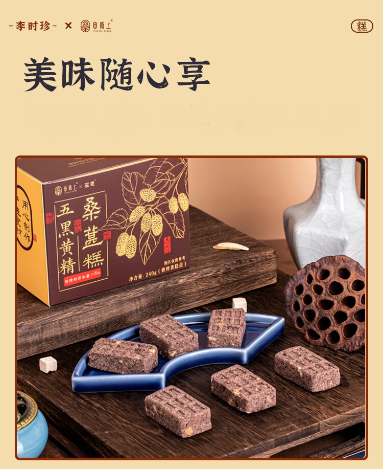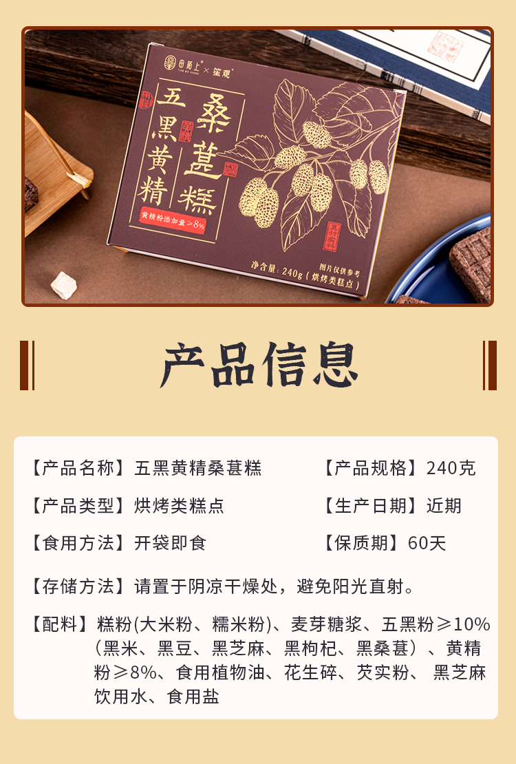 五黑黄精桑葚糕 黑色秋冬藏养腰肾头发 恢复能量下午茶糕点健康零食老人小孩 拒绝不良添加 五黑健康糕点240g/盒【约8-12个】