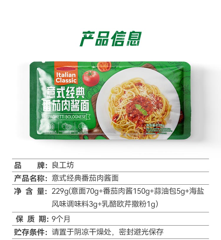 良工坊意式经典番茄肉酱面229g