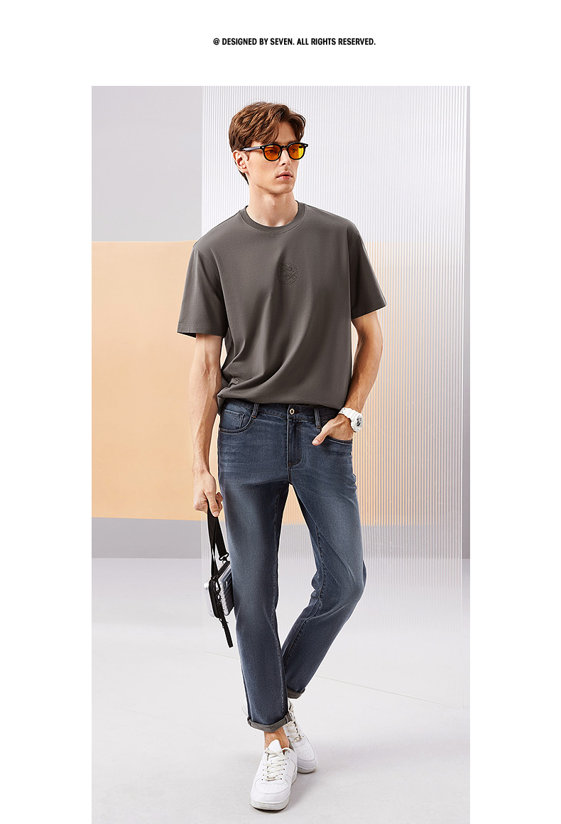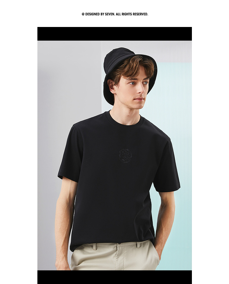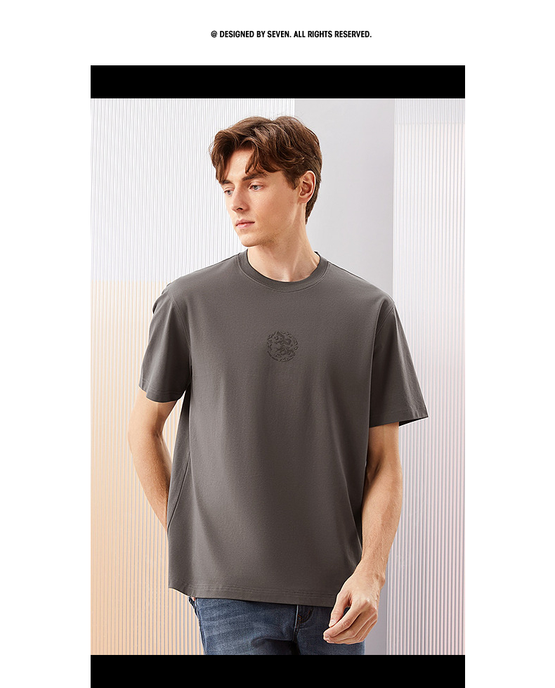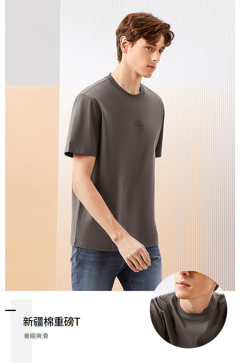 【凉感索罗纳】柒牌男装圆领短袖T恤男2024夏季新款休闲百搭上衣 126T71900