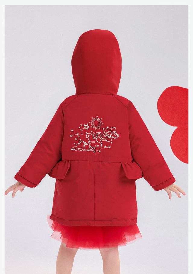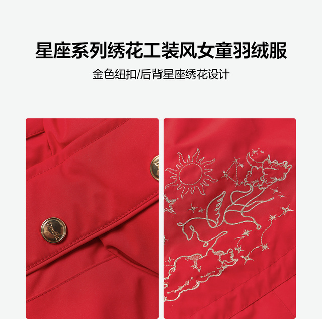 笛莎Deesha 童装女童羽绒服2025冬新款星座系列绣花工装风女童羽绒服