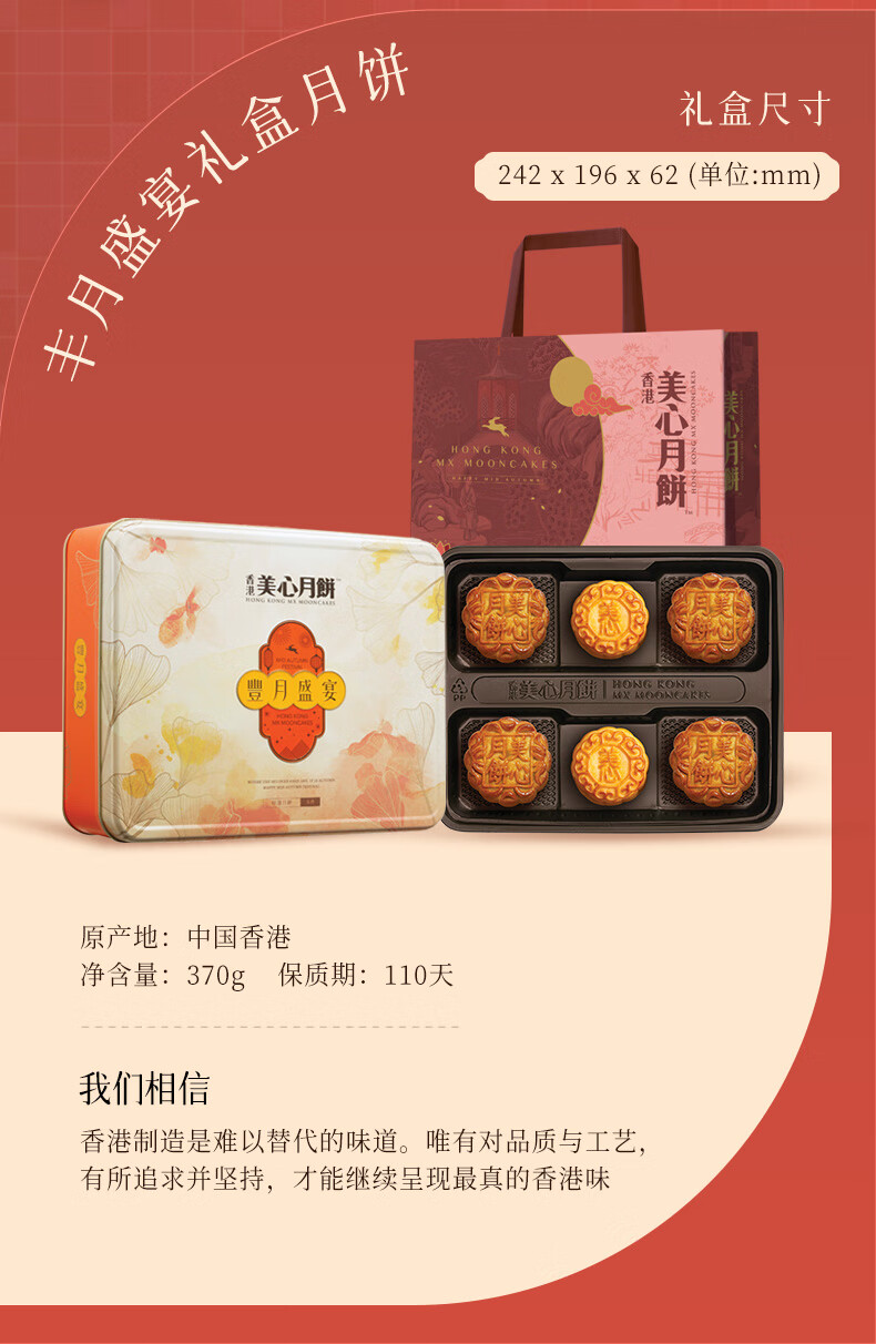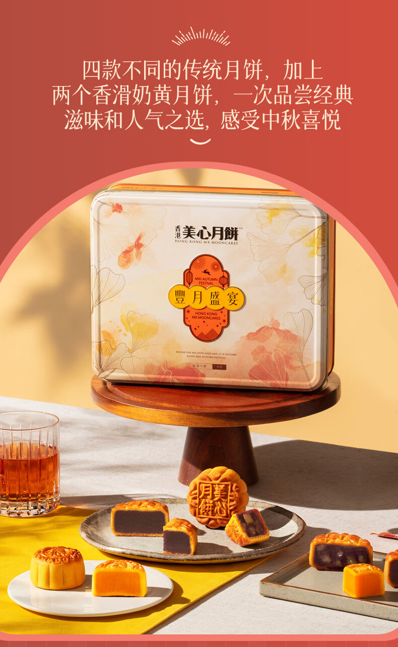 【乐享中秋】香港美心丰月盛宴月饼礼盒370g/070104 一盒有5款不同口味 传统月饼加上香滑奶黄月饼