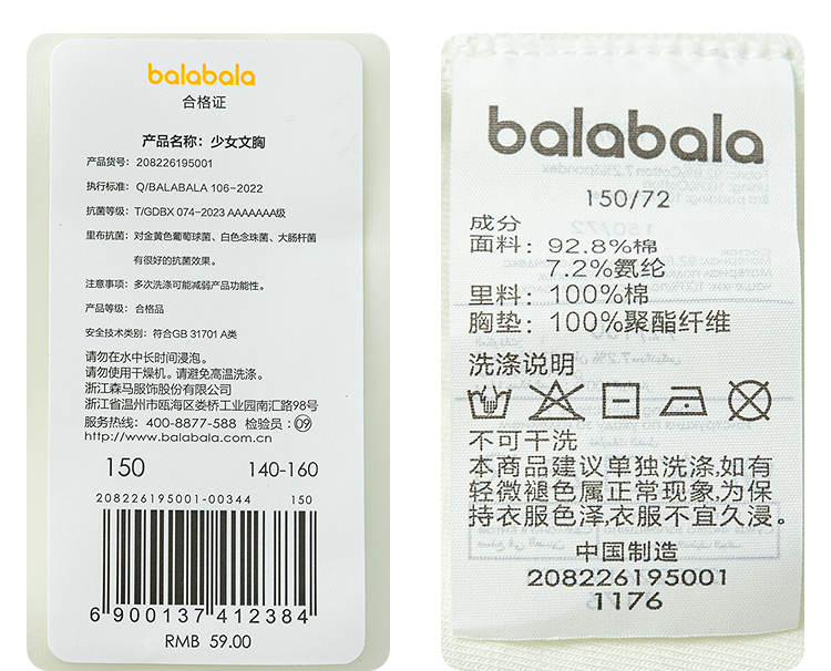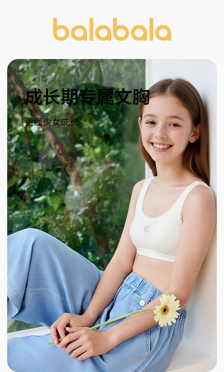 巴拉巴拉女童内衣发育期儿童小背心文胸防凸点防走光甜美花边抗菌