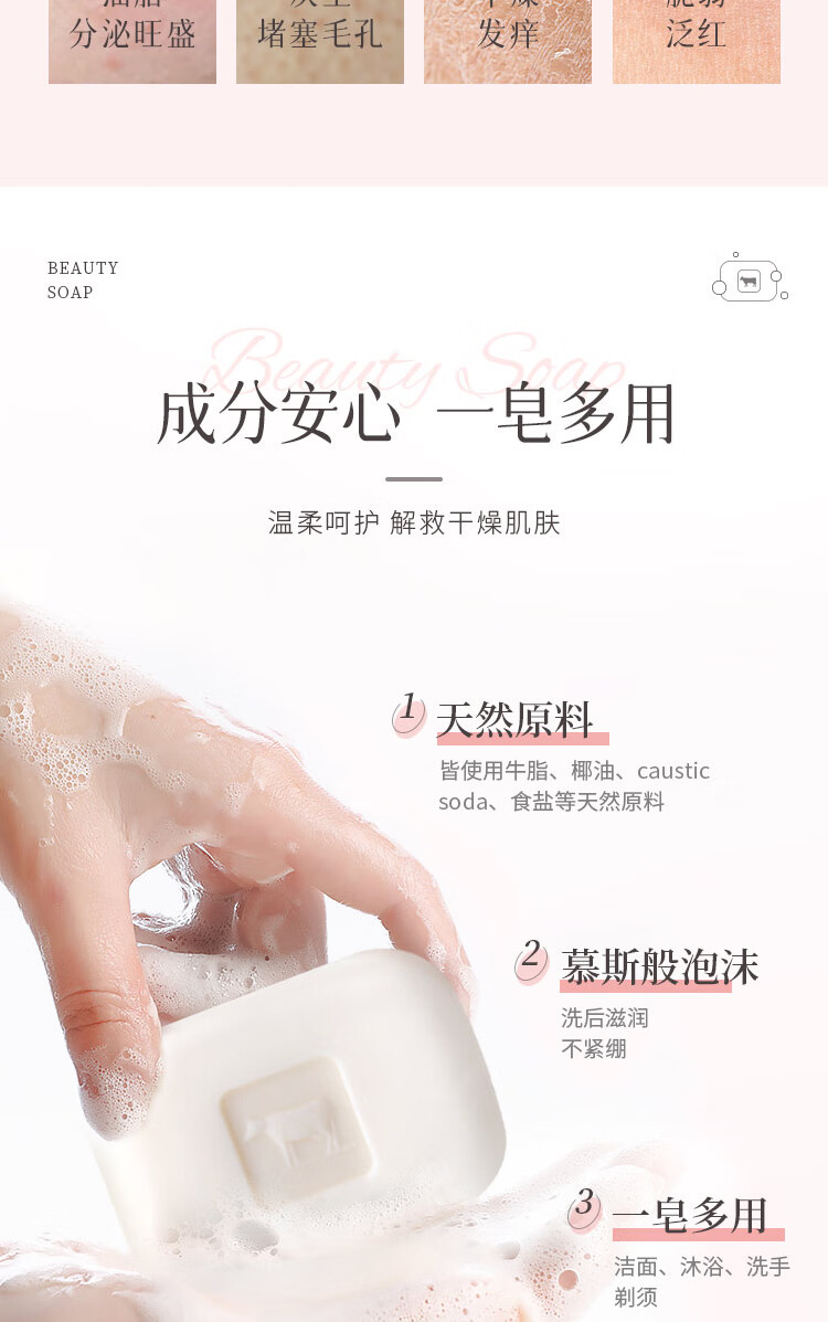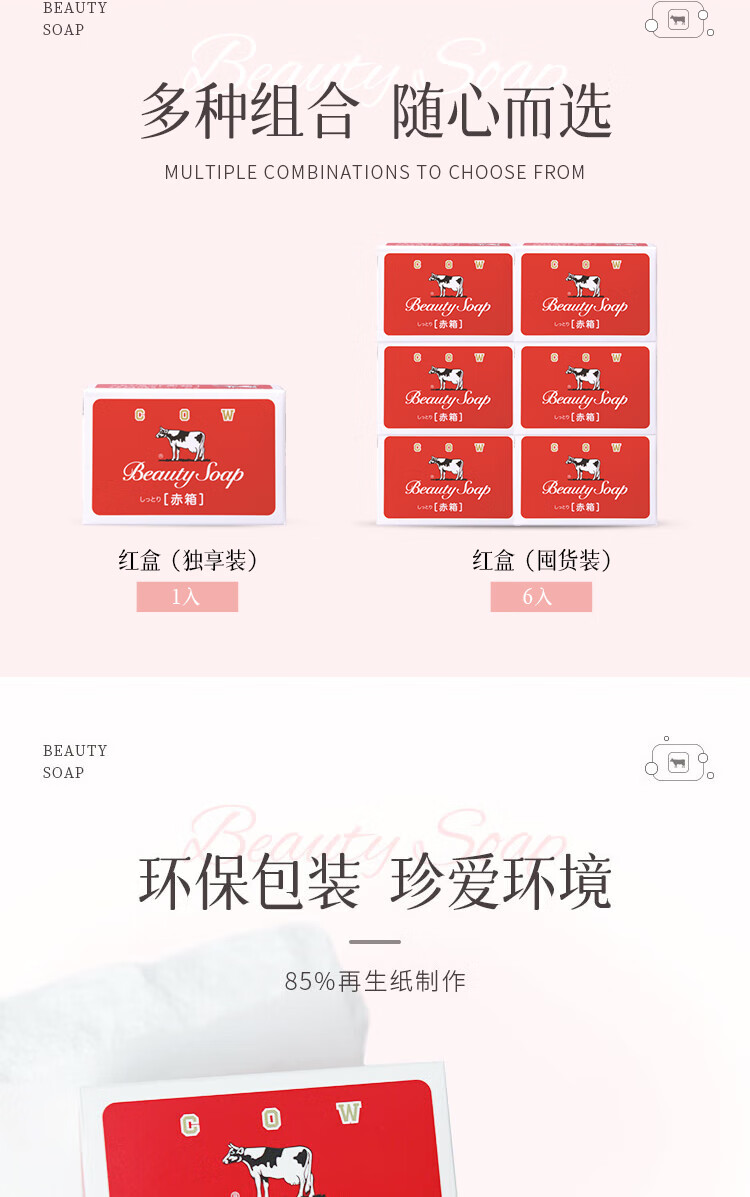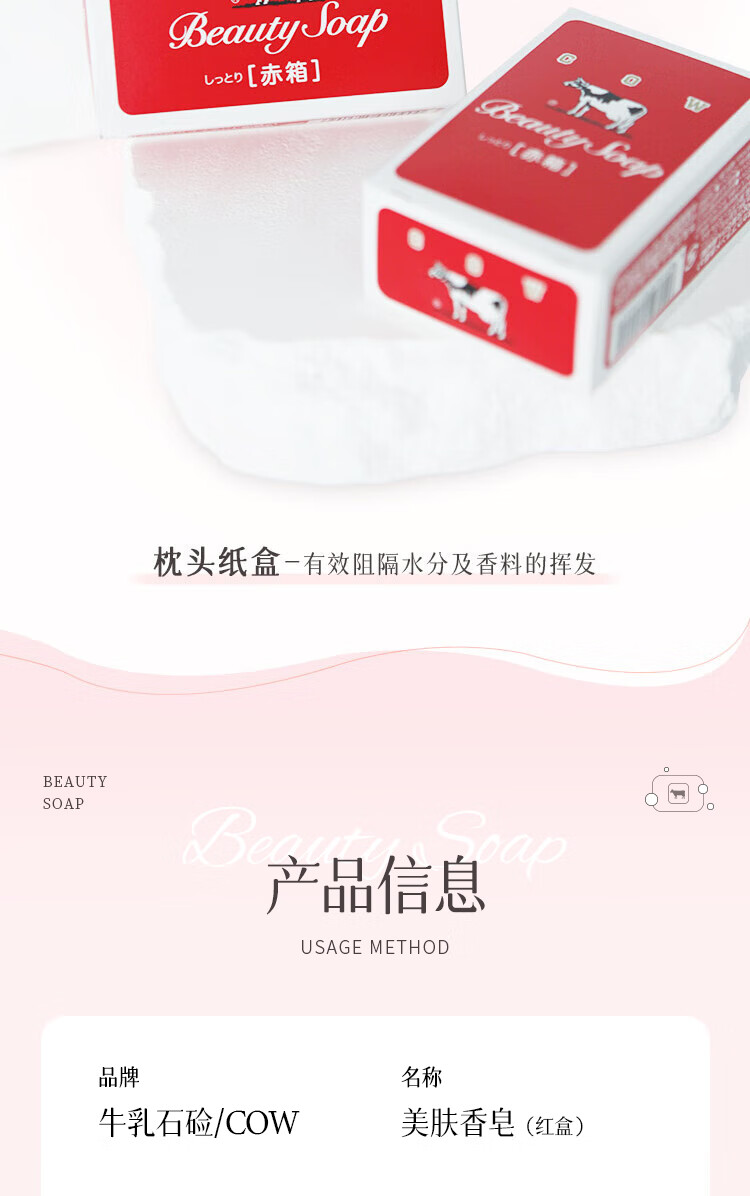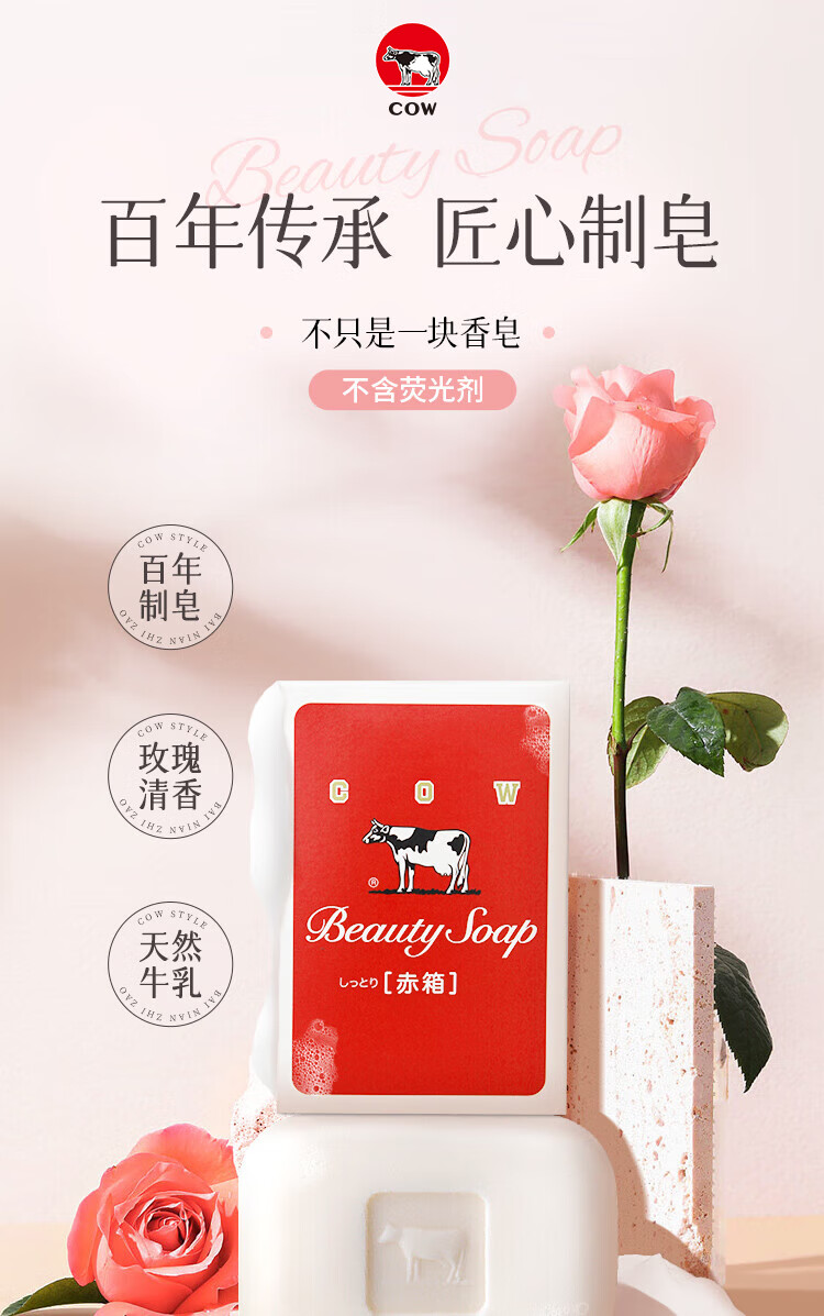日本原装进口牛乳石硷玫瑰味美肤香皂(红盒)90g