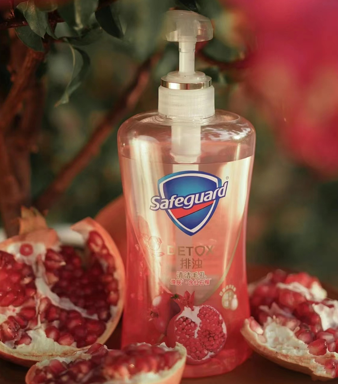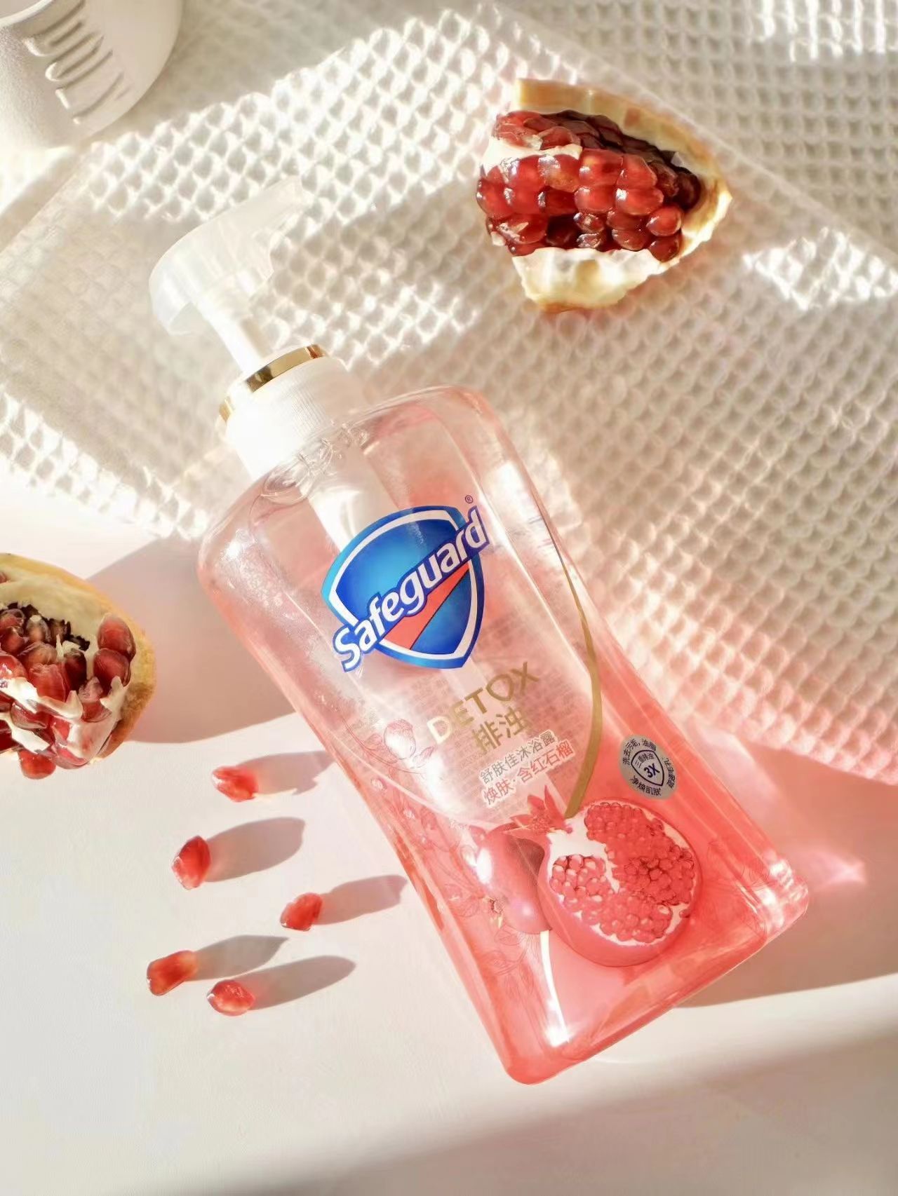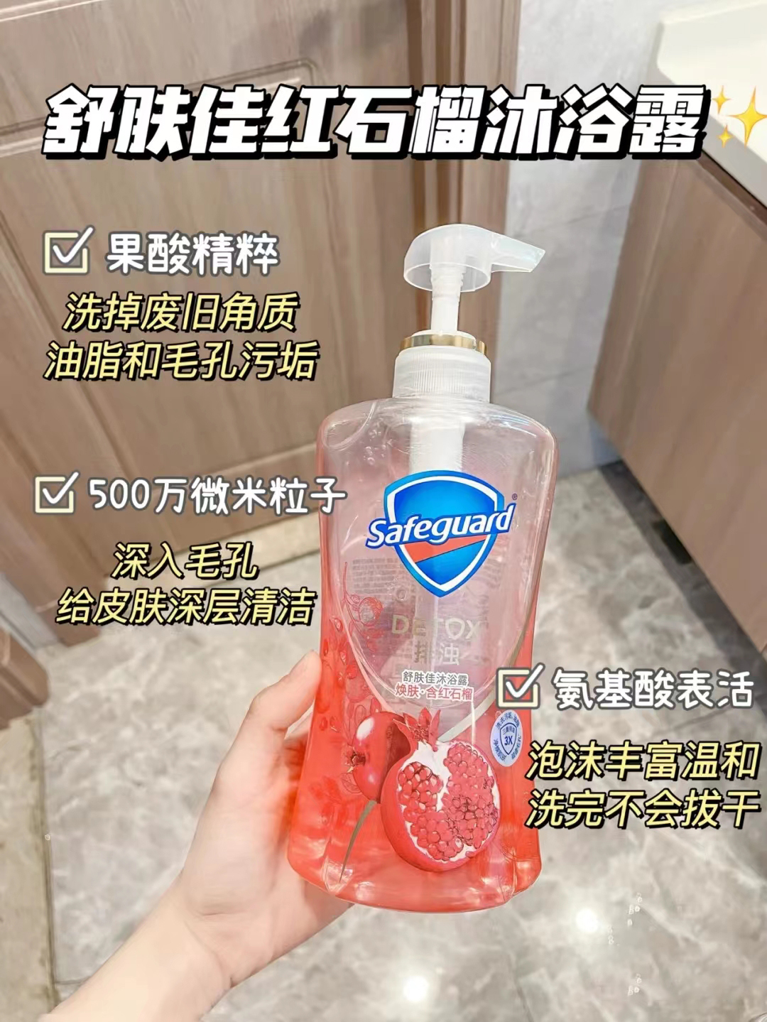 舒肤佳红石榴沐浴露,果香“天花板”,微米粒子¹深层清洁,让肌肤也能自由“呼吸”
