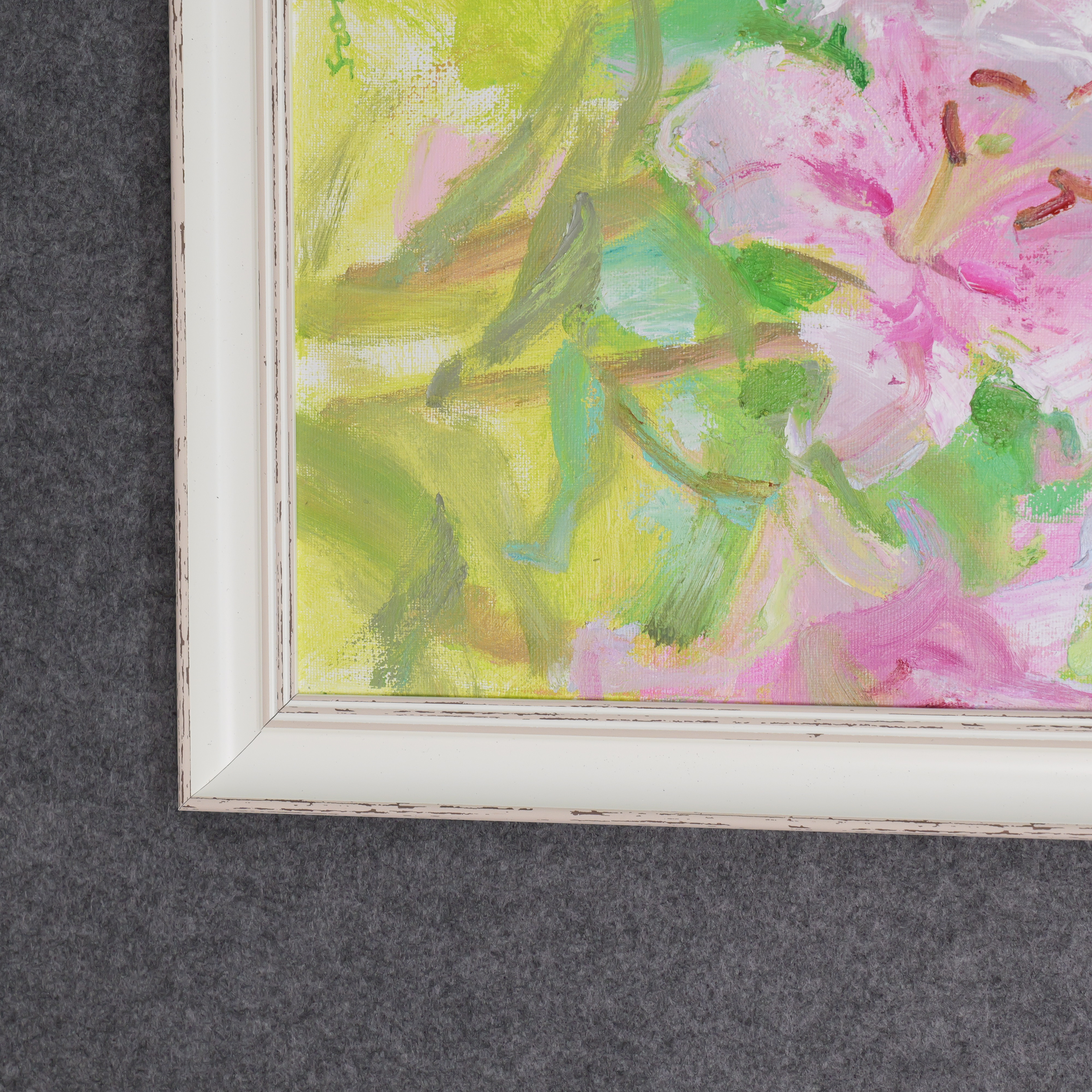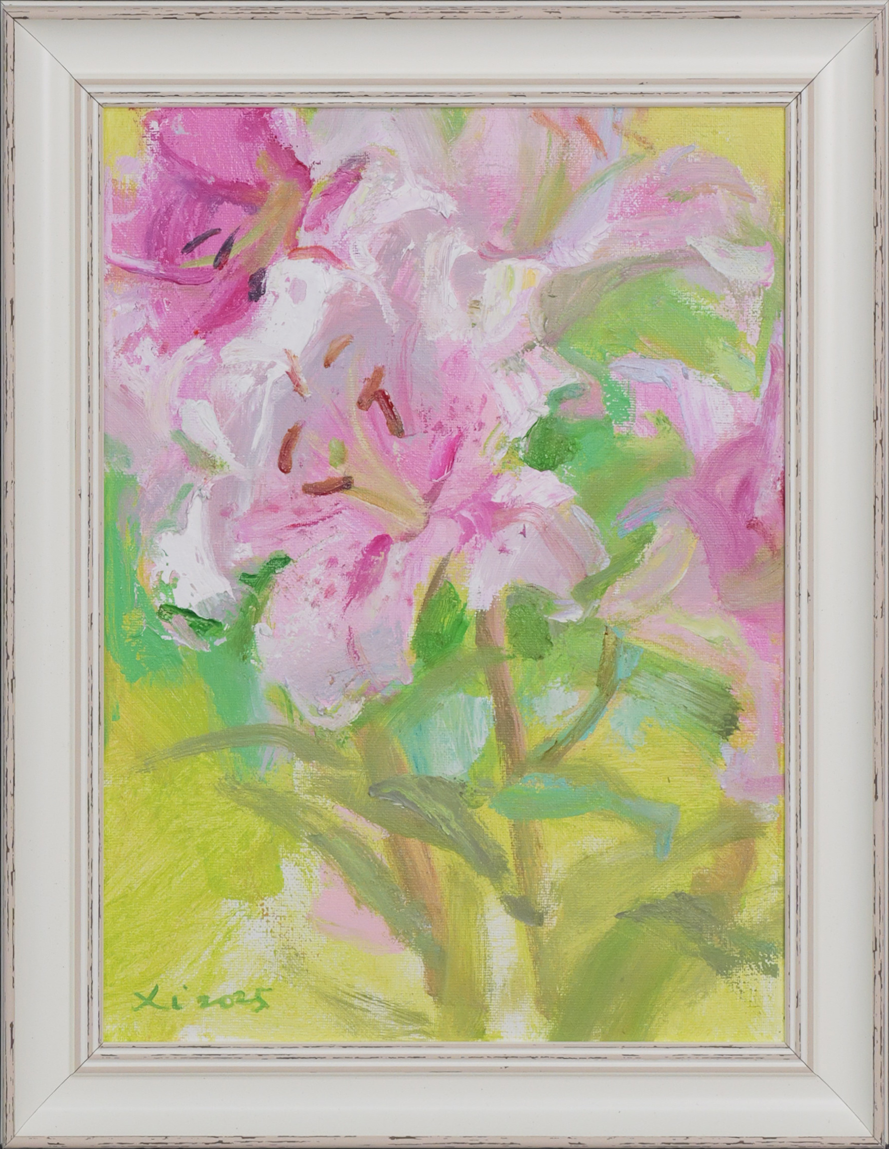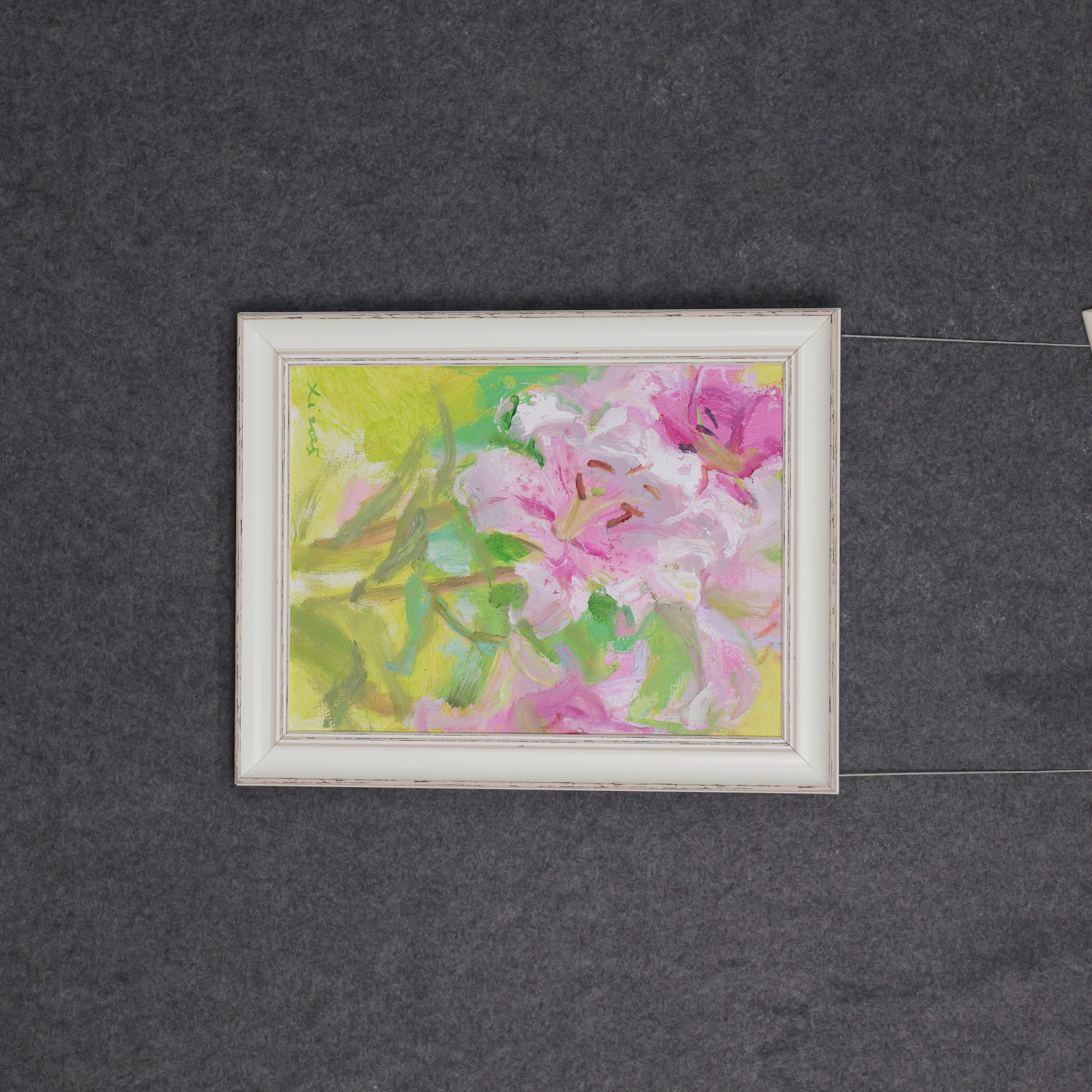张西《粉百合》油画39CM*29CM 手绘油画布雅致小品【YH0049】
