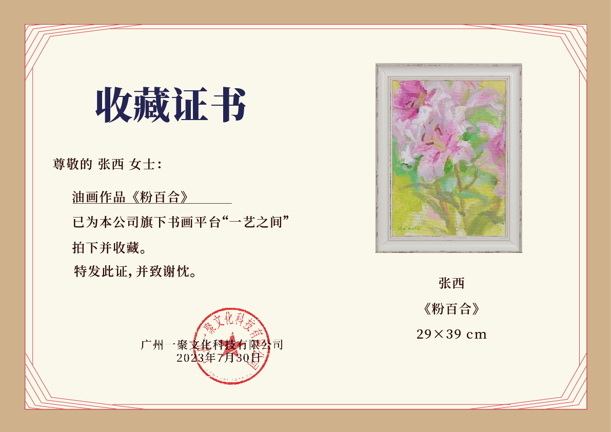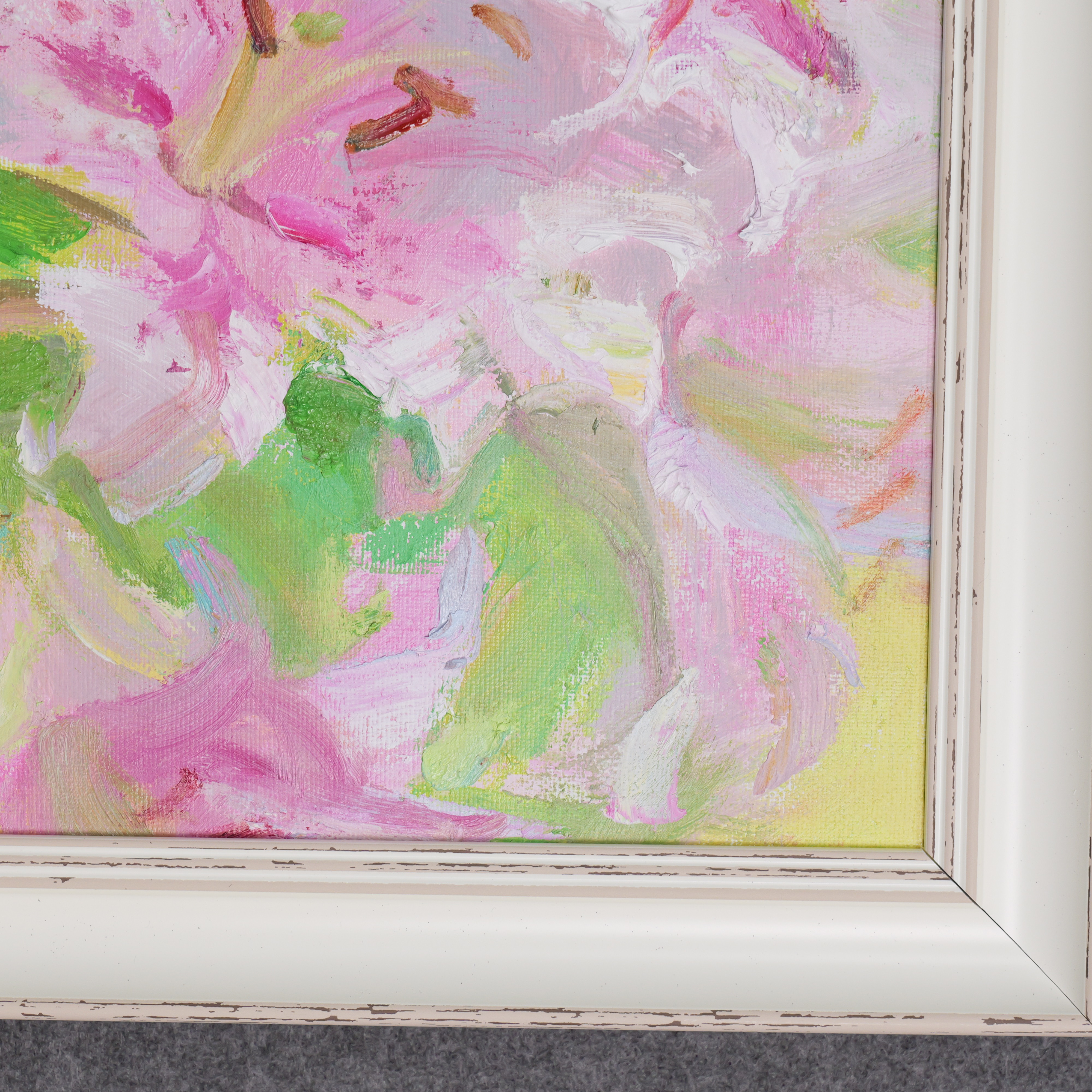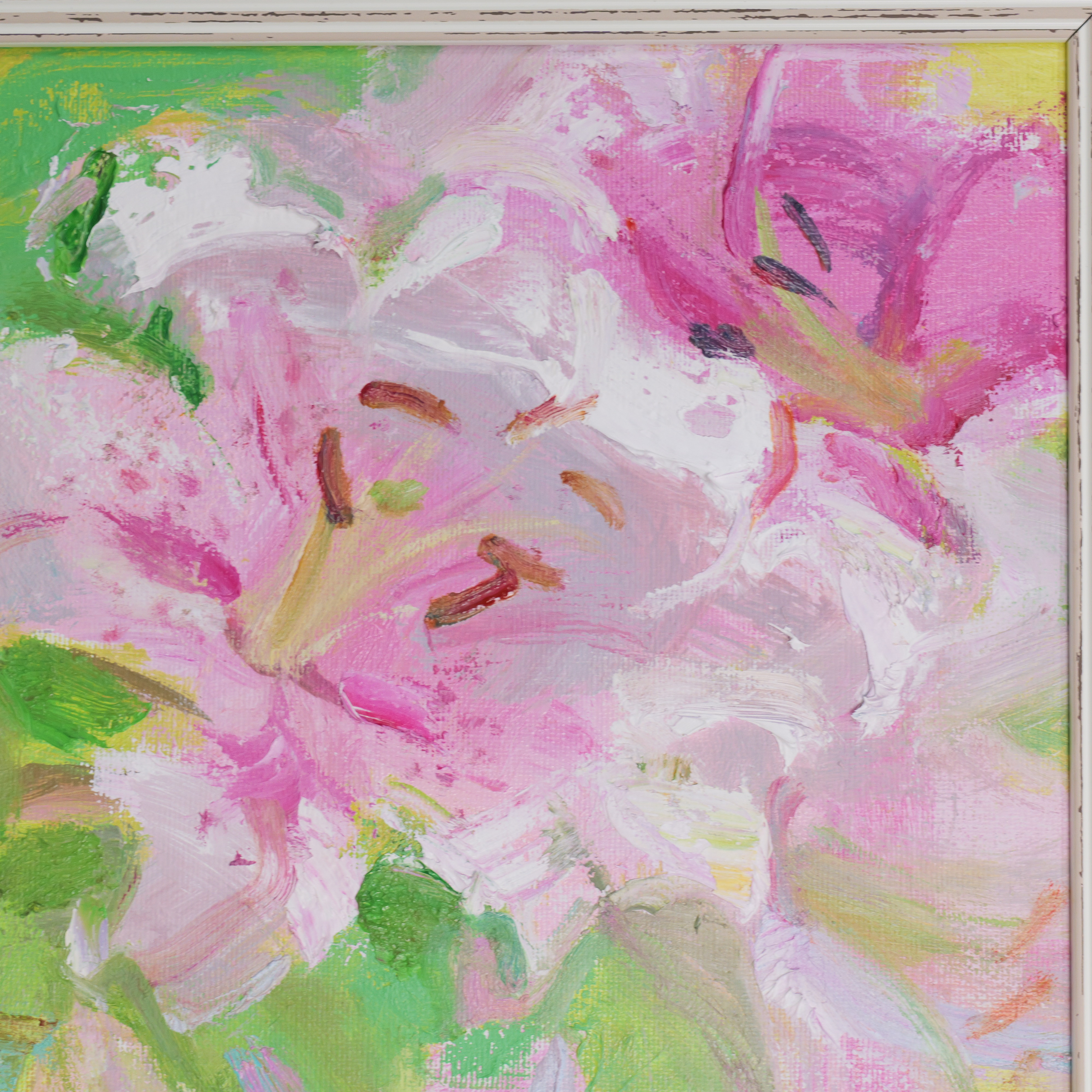 张西《粉百合》油画39CM*29CM 手绘油画布雅致小品【YH0049】
