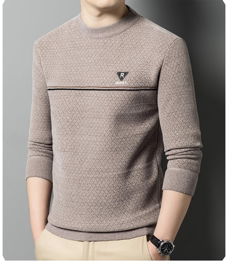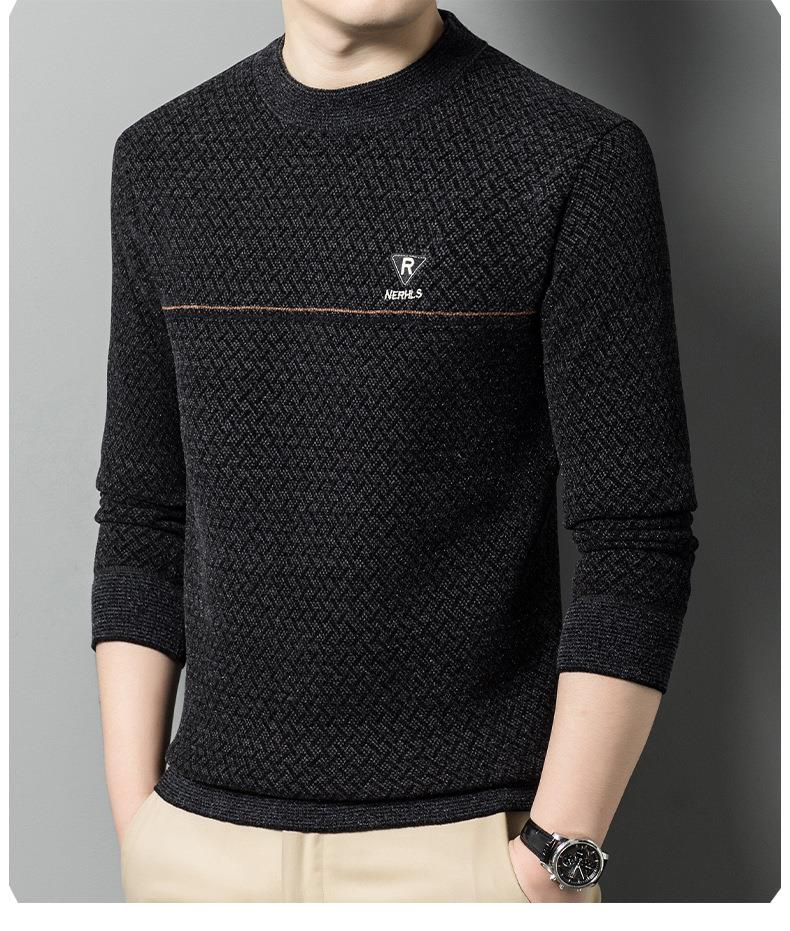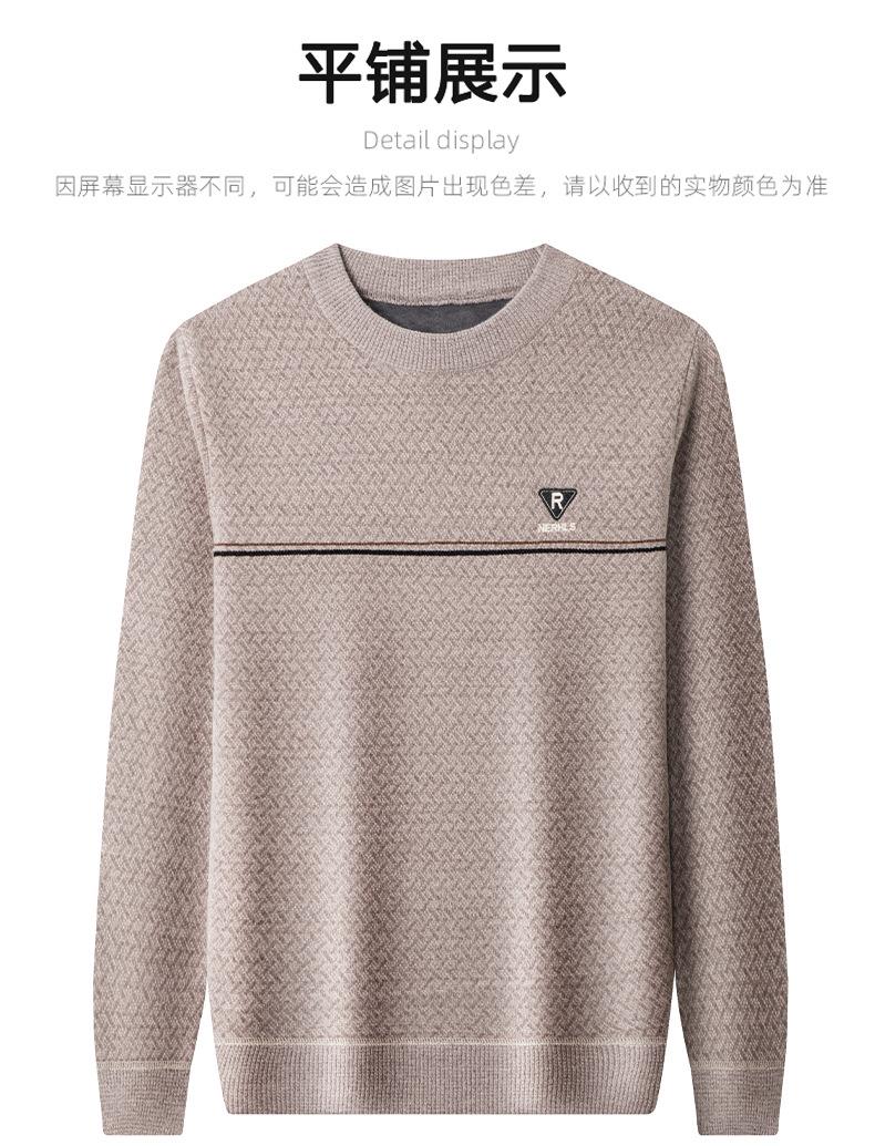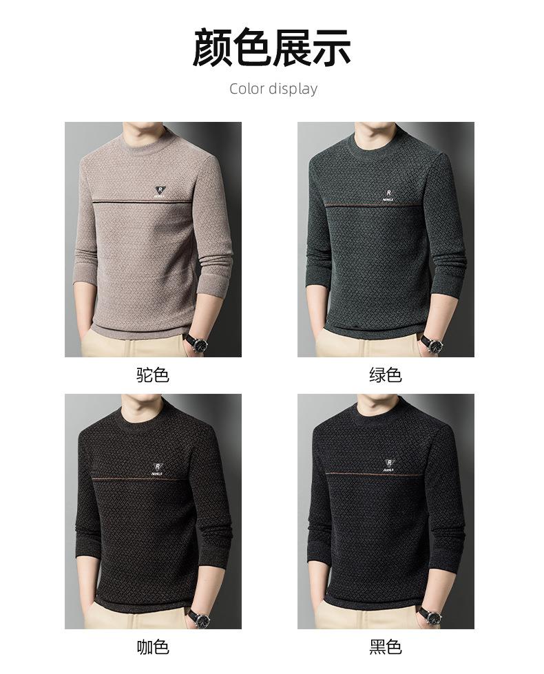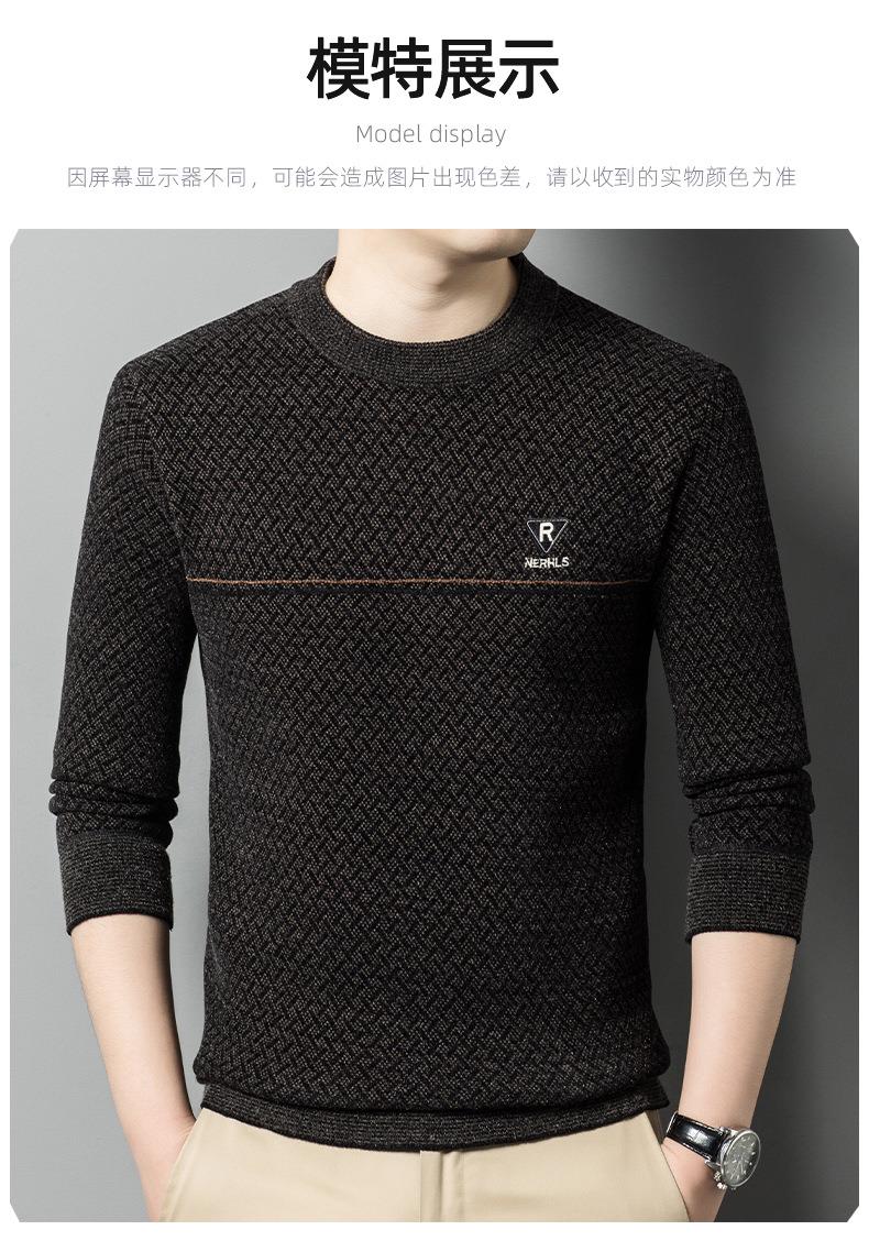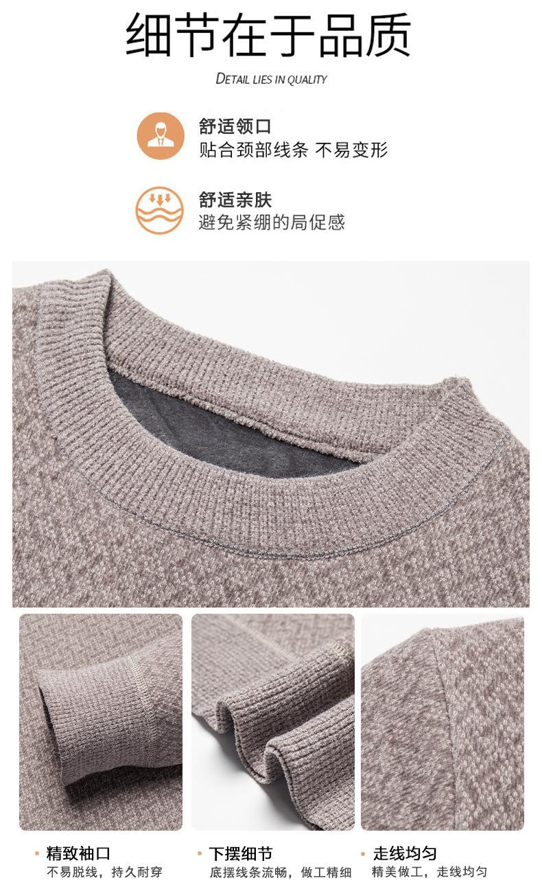 雪貂绒加绒加厚针织衫男士秋冬季新款百搭圆领保暖休闲打底衫毛衣
