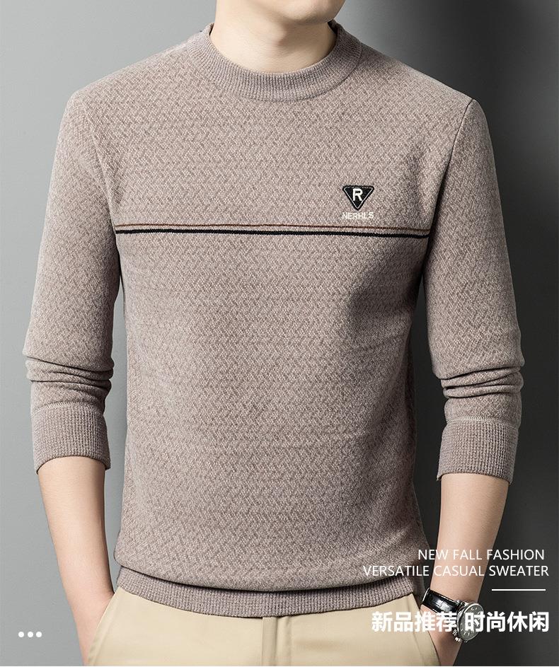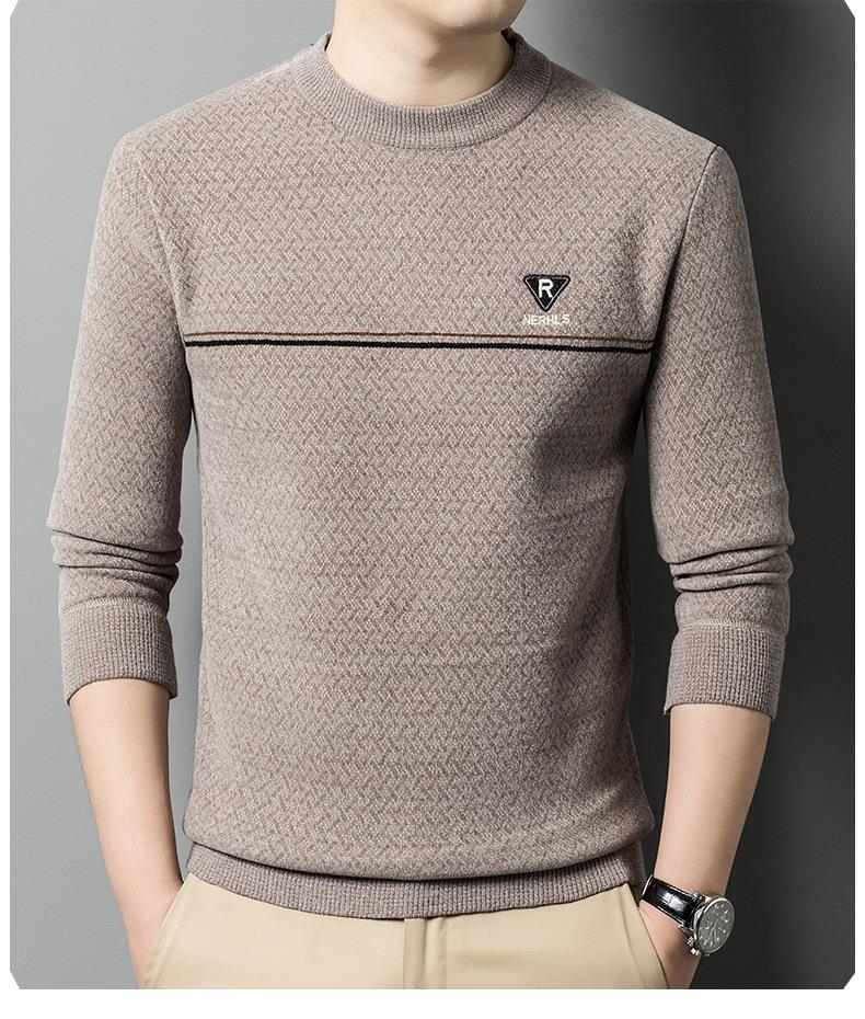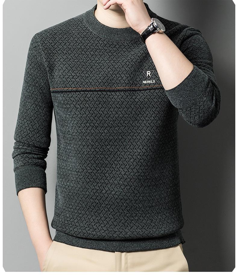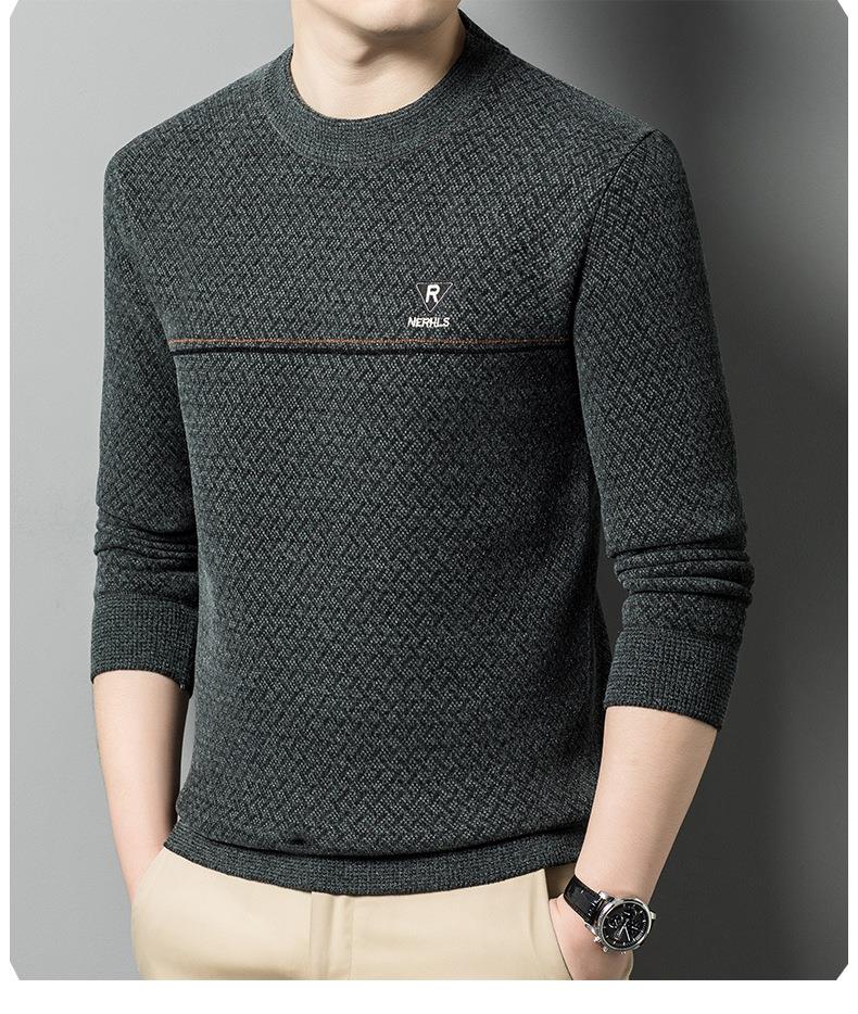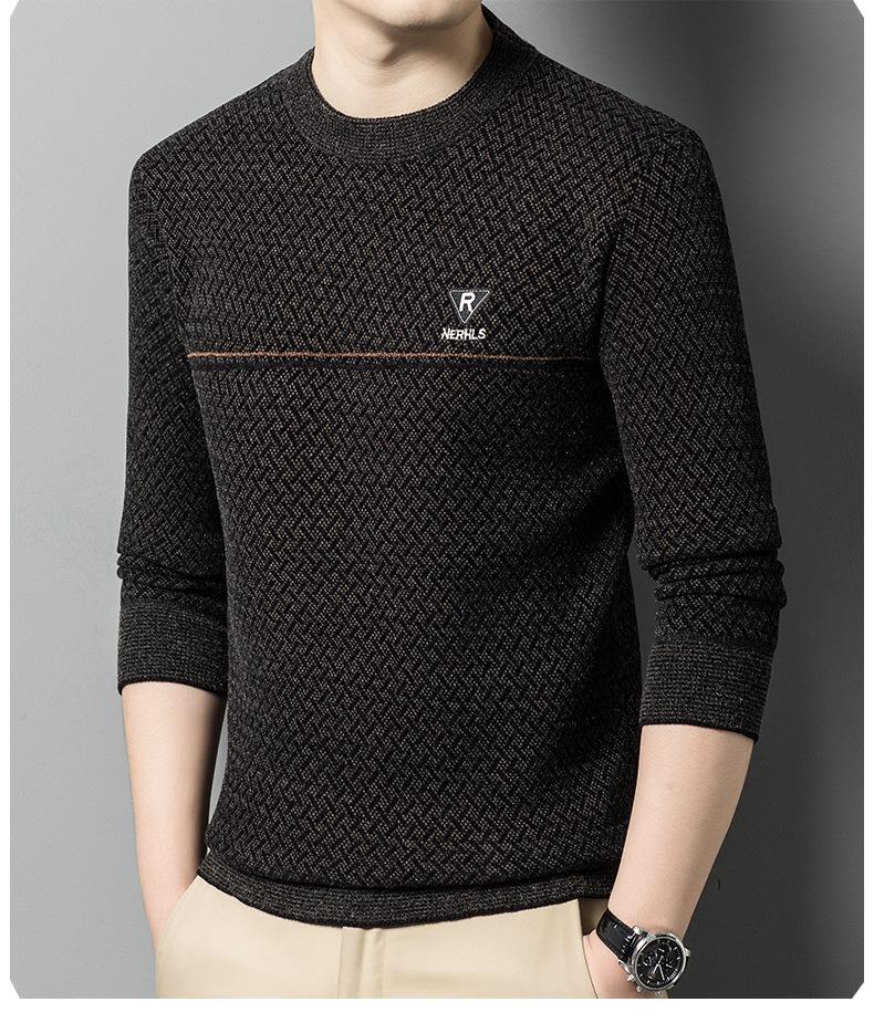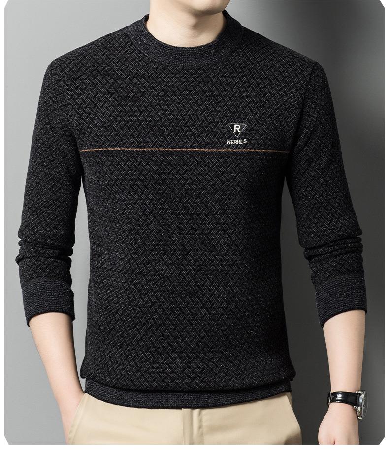 雪貂绒加绒加厚针织衫男士秋冬季新款百搭圆领保暖休闲打底衫毛衣