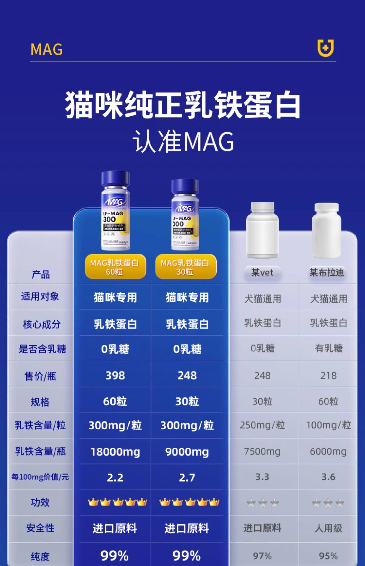 MAG猫狗乳铁蛋白 补铁营养补充有助增强免疫力宠物少生病