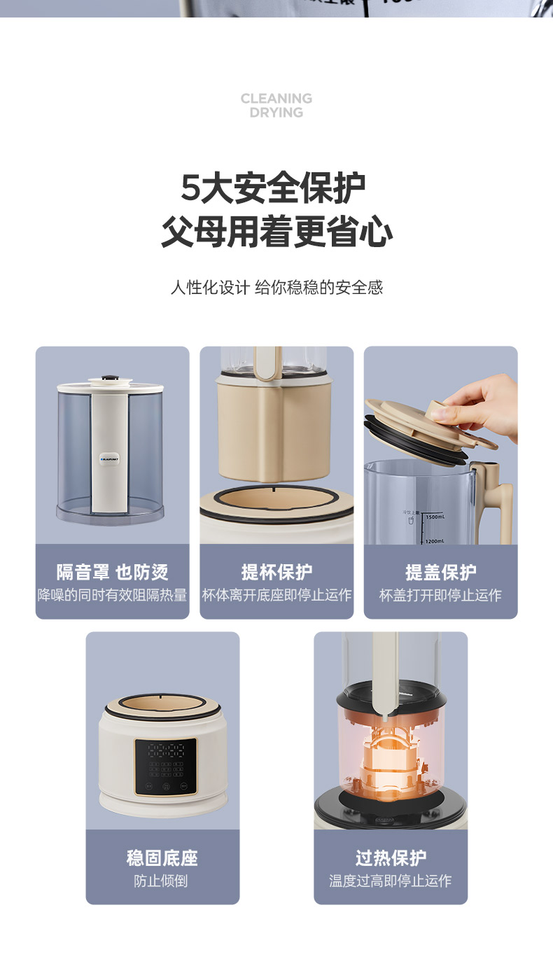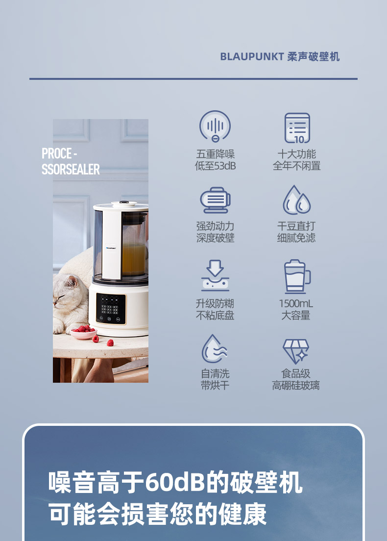 德国蓝宝新款破壁机家用全自动低音料理机破壁辅食机多功能免滤低音豆浆机