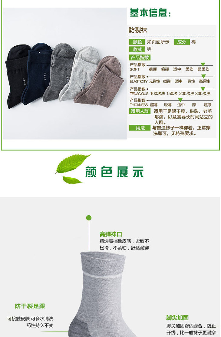【凝胶防裂袜子】 植物精油 滋润肌肤 丨(5双装5个颜色)行走的护脚霜 柔嫩双足 补水保湿 修复足跟干裂