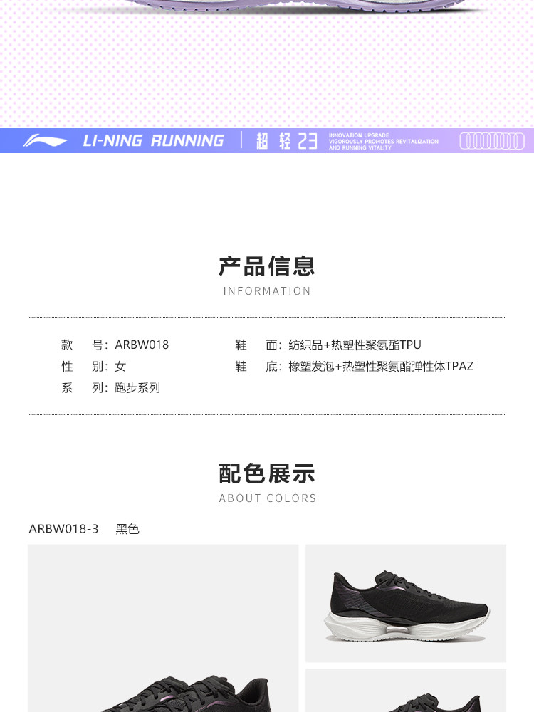 李宁 超轻23 女款 透气轻质新款休闲舒适潮流百搭运动跑步鞋