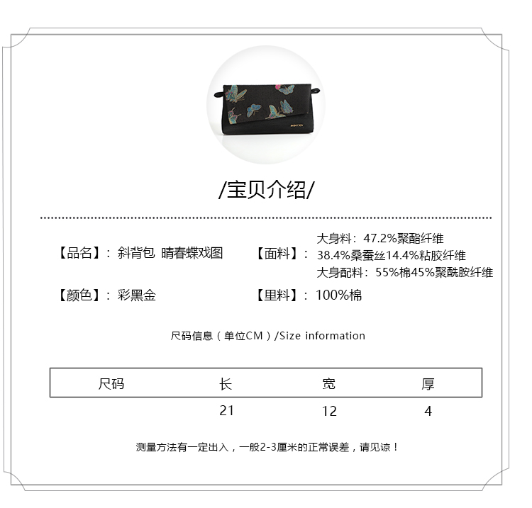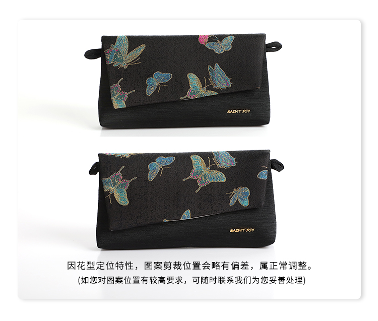 SAINTJOY/上久楷宋锦斜背包 晴春蝶戏图 彩黑金 XB3B095208001