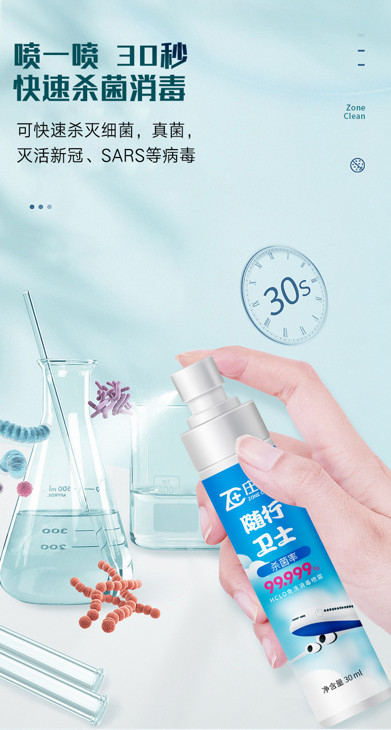庄辰 随行卫士 30ml 出行消毒喷雾 便携式喷雾 0酒精 飞机高铁均可携带
