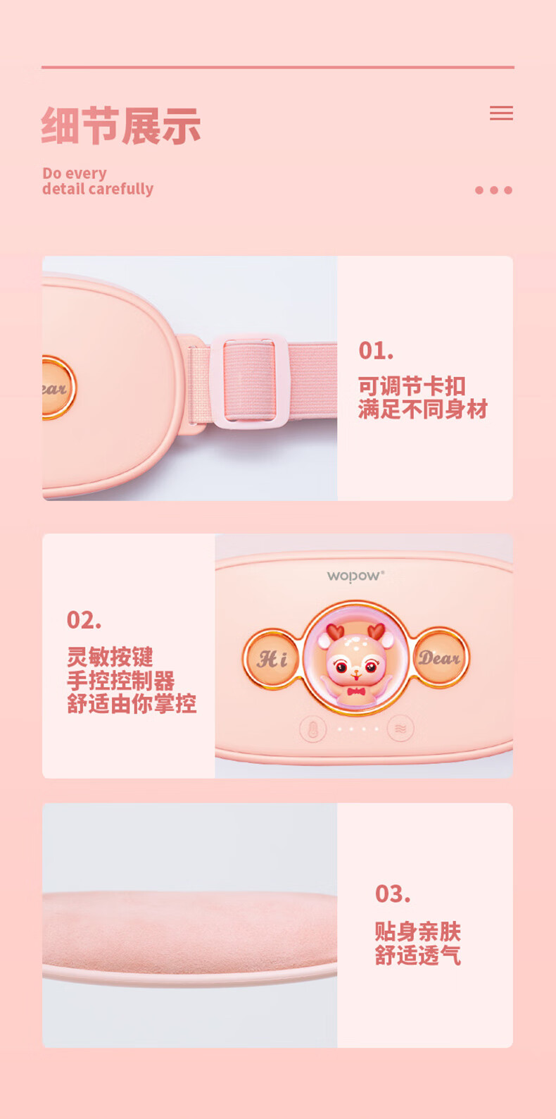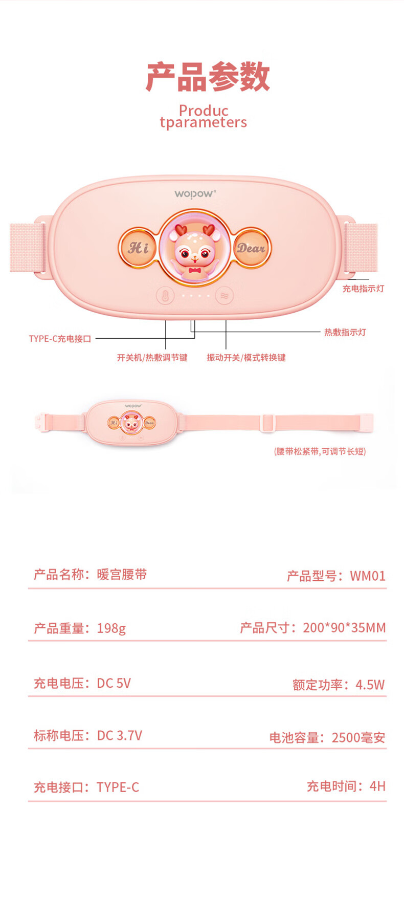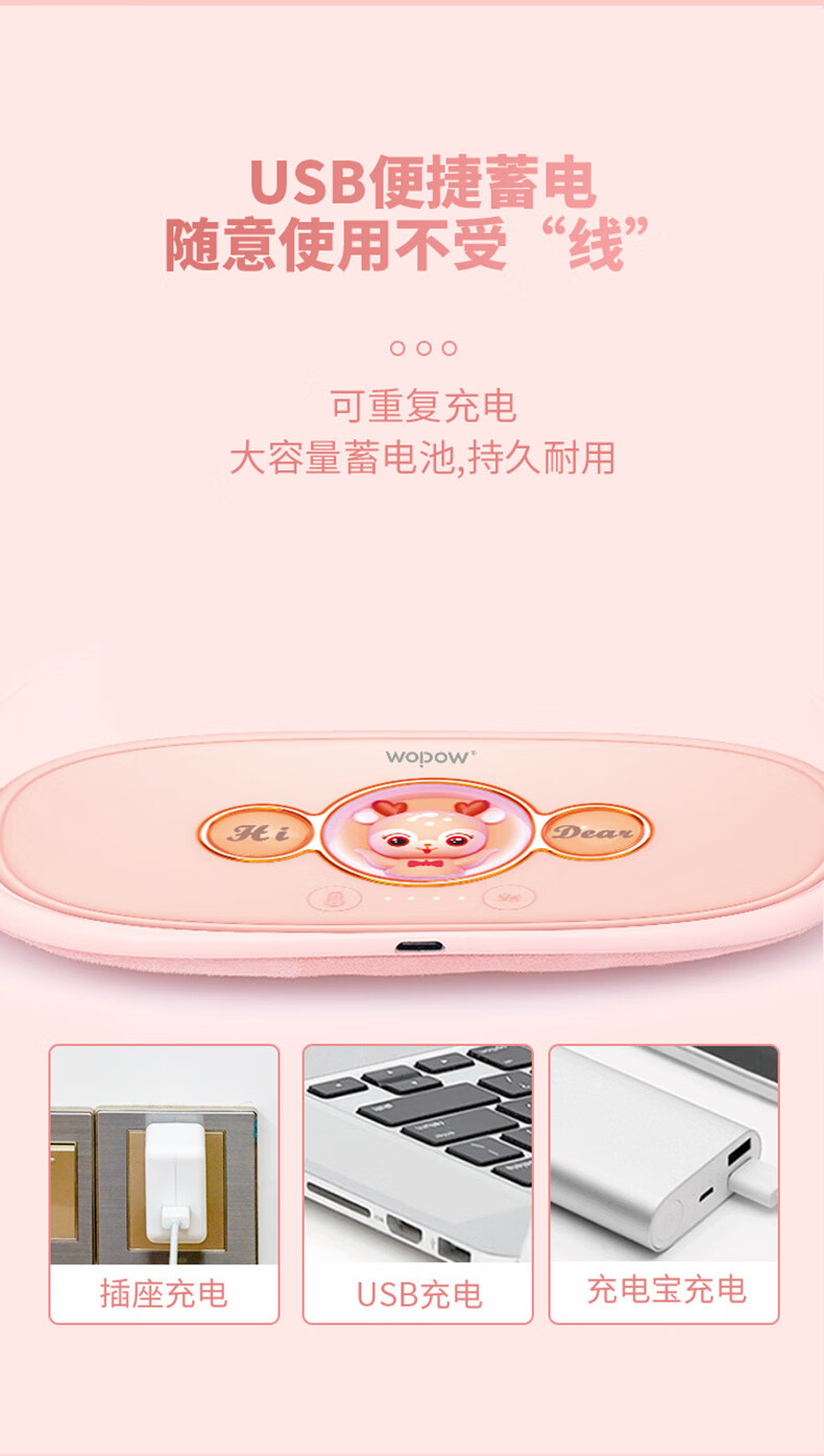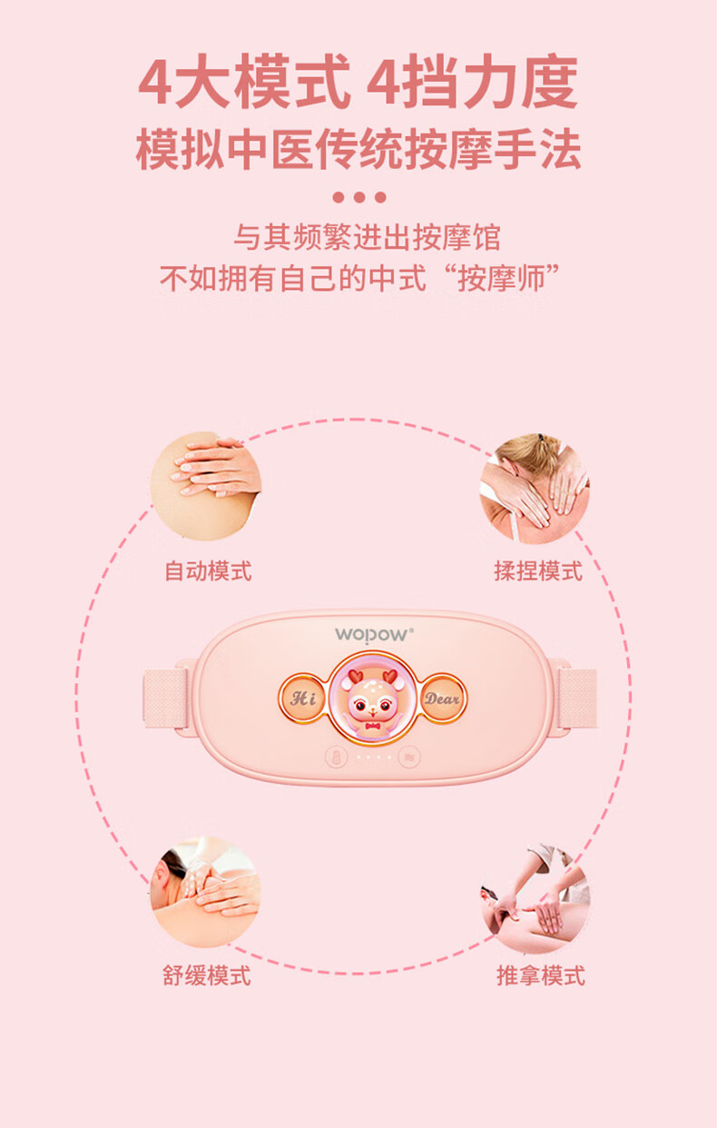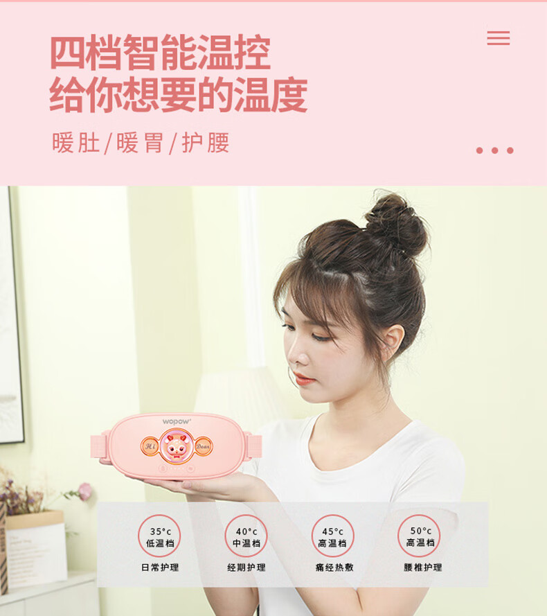 沃品(WOPOW)WM01暖宫腰带大姨妈神器例假生理期暖腹贴痛经月经按摩发热暖 粉色