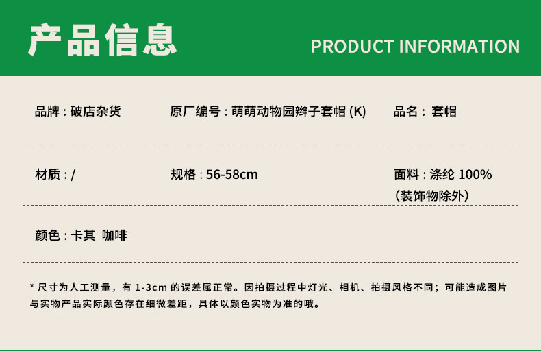 加厚可爱萌萌动物园辫子套帽-纪念日百货门店同款166745475