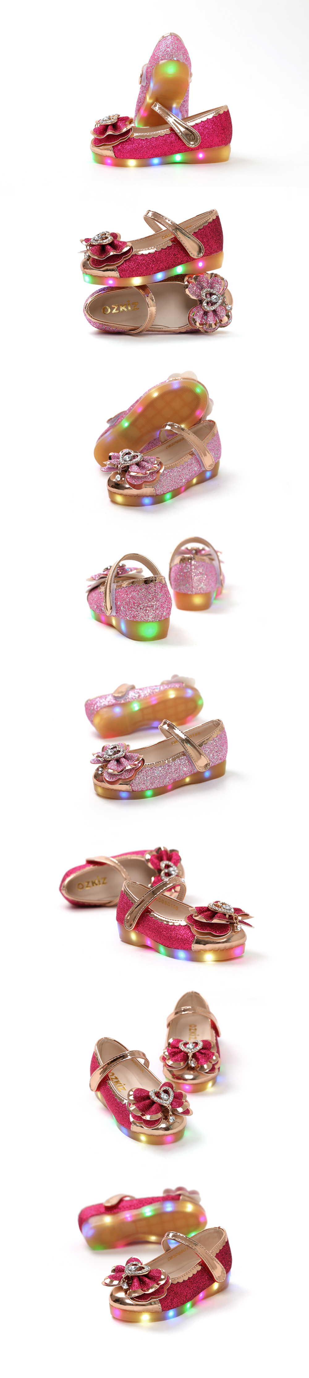 韩国进口品牌童鞋-亮片蝴蝶结LED皮鞋