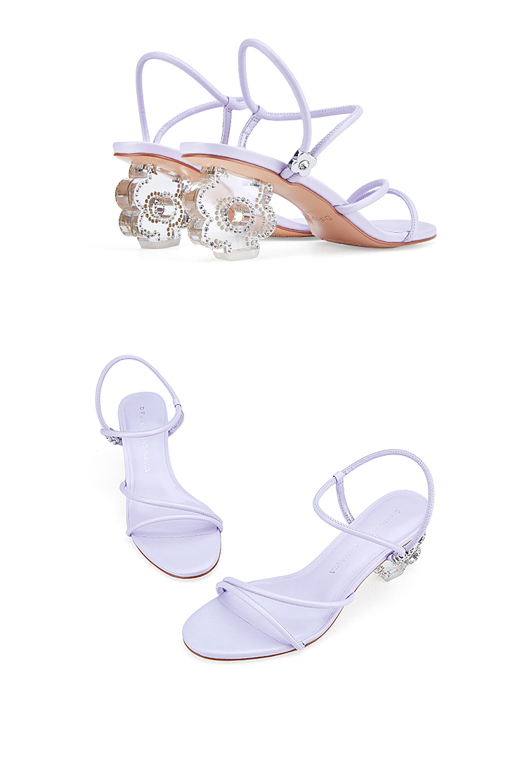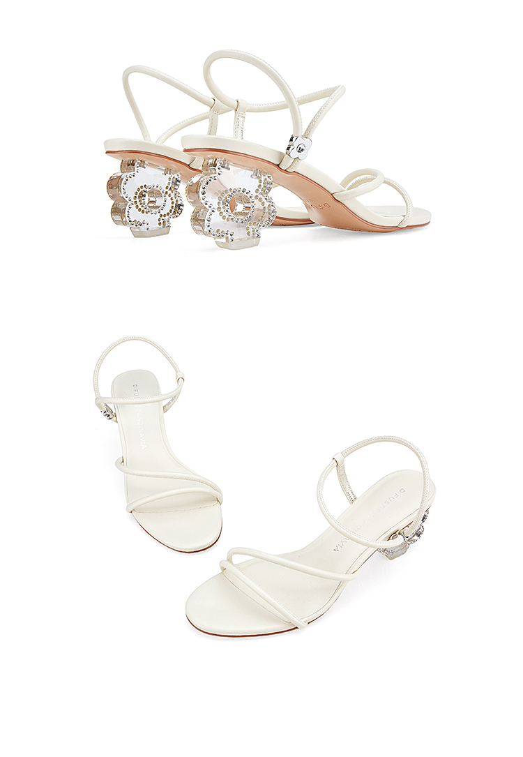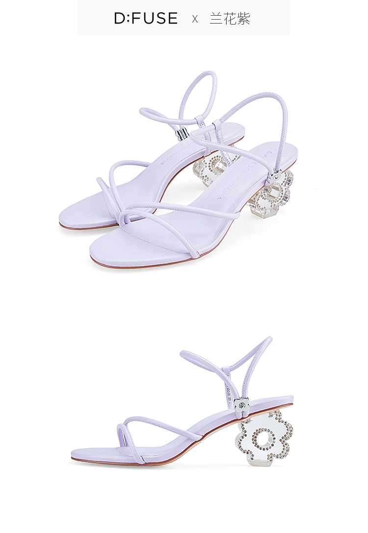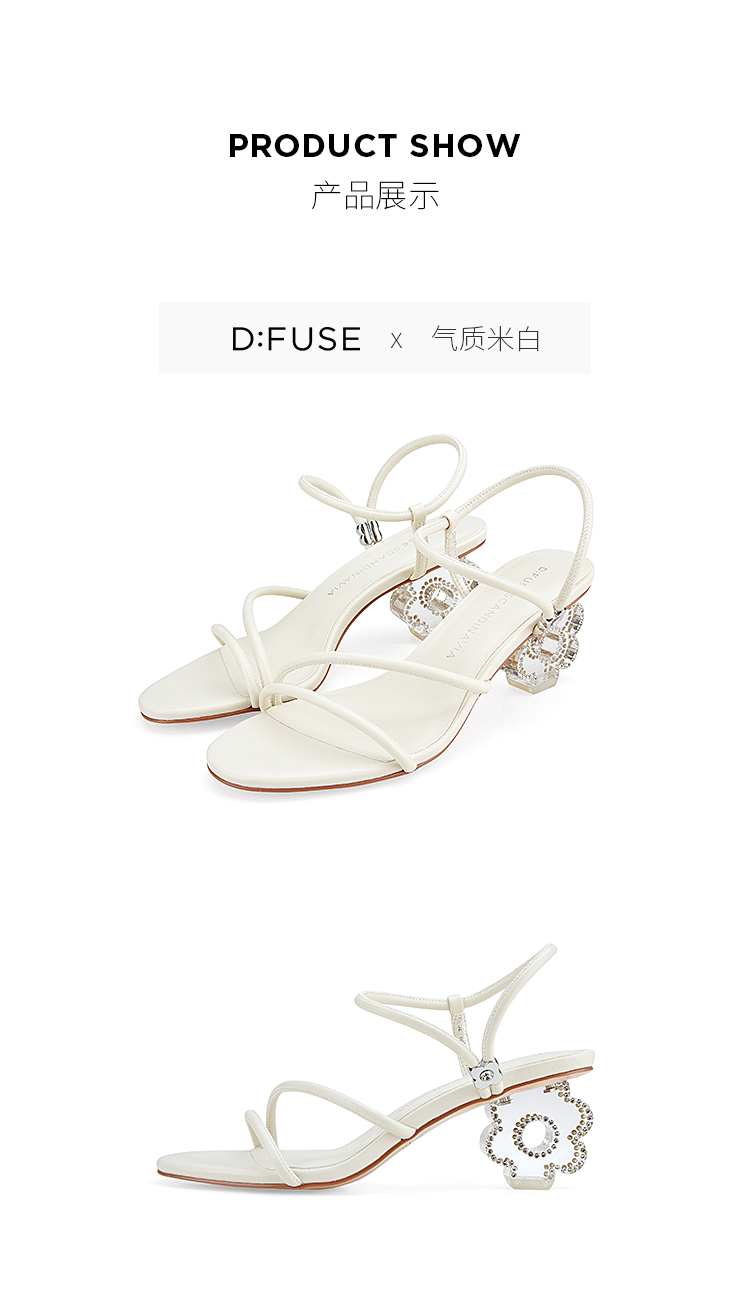 DFuse迪芙斯夏季新款圆头一字细带花形水晶跟凉鞋DF32115336