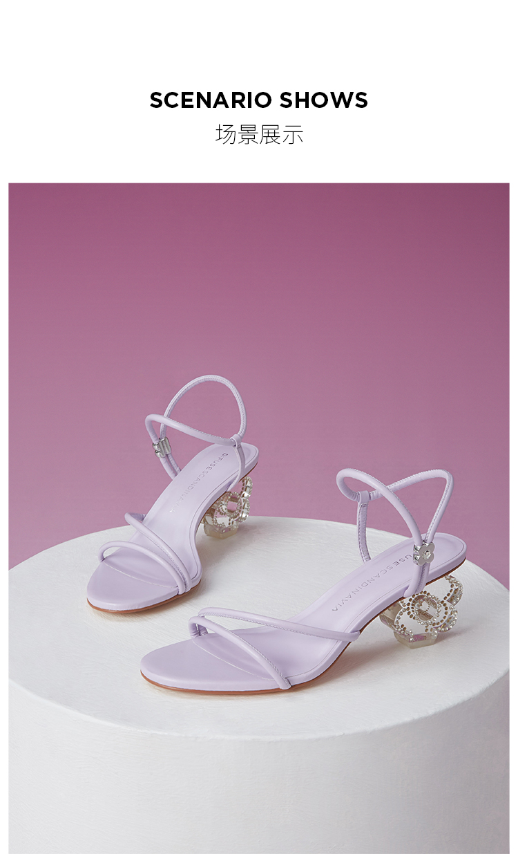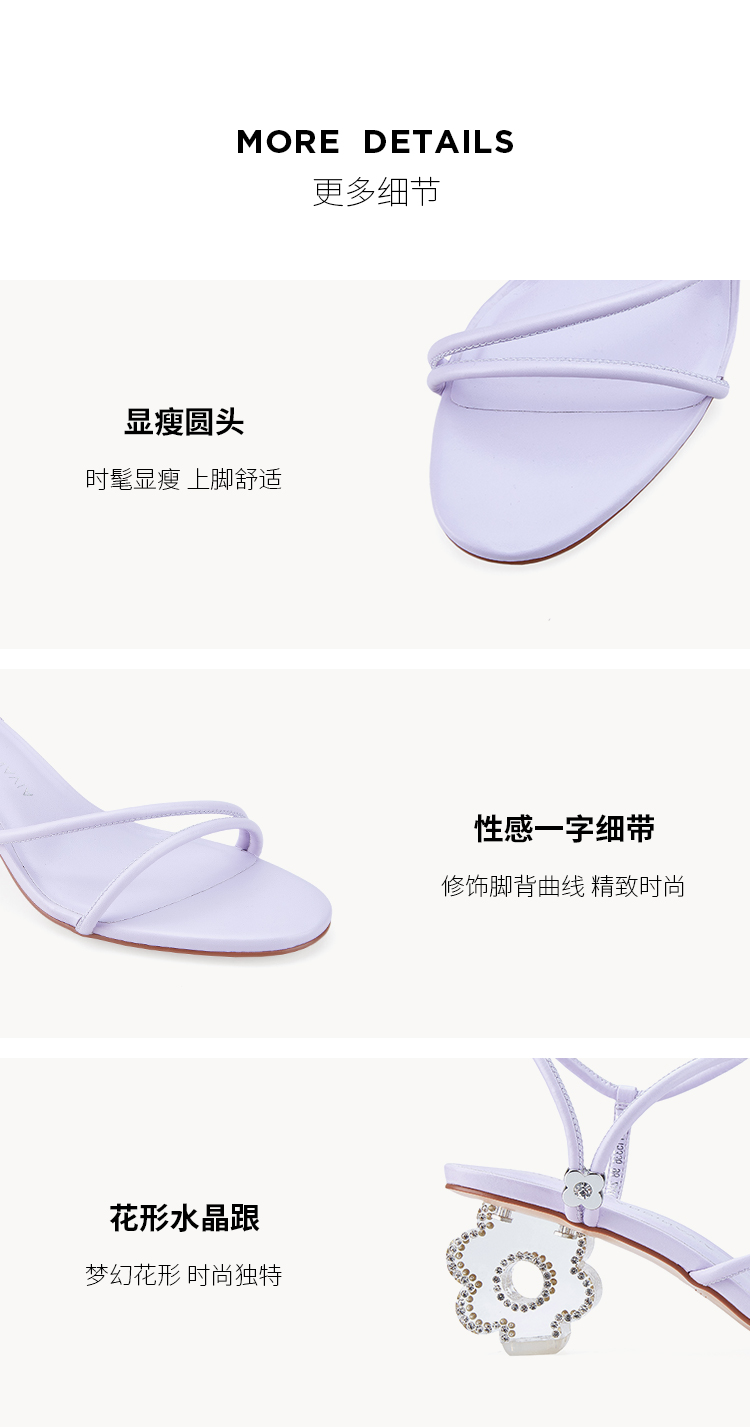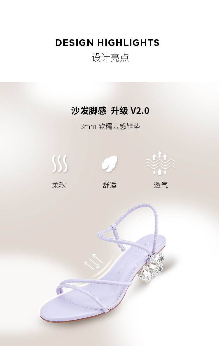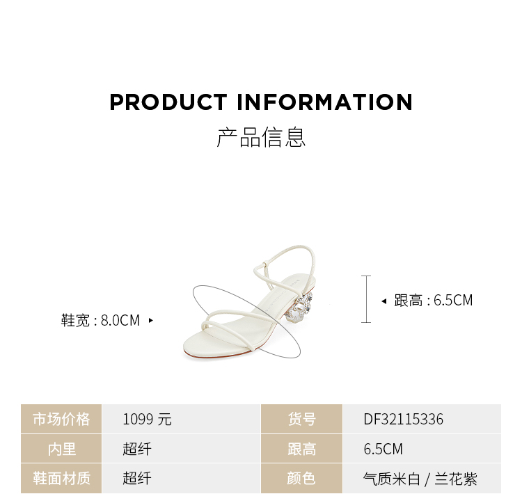 DFuse迪芙斯夏季新款圆头一字细带花形水晶跟凉鞋DF32115336