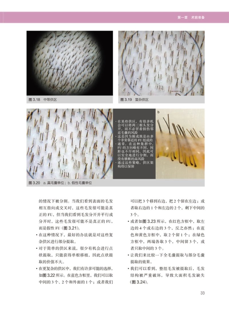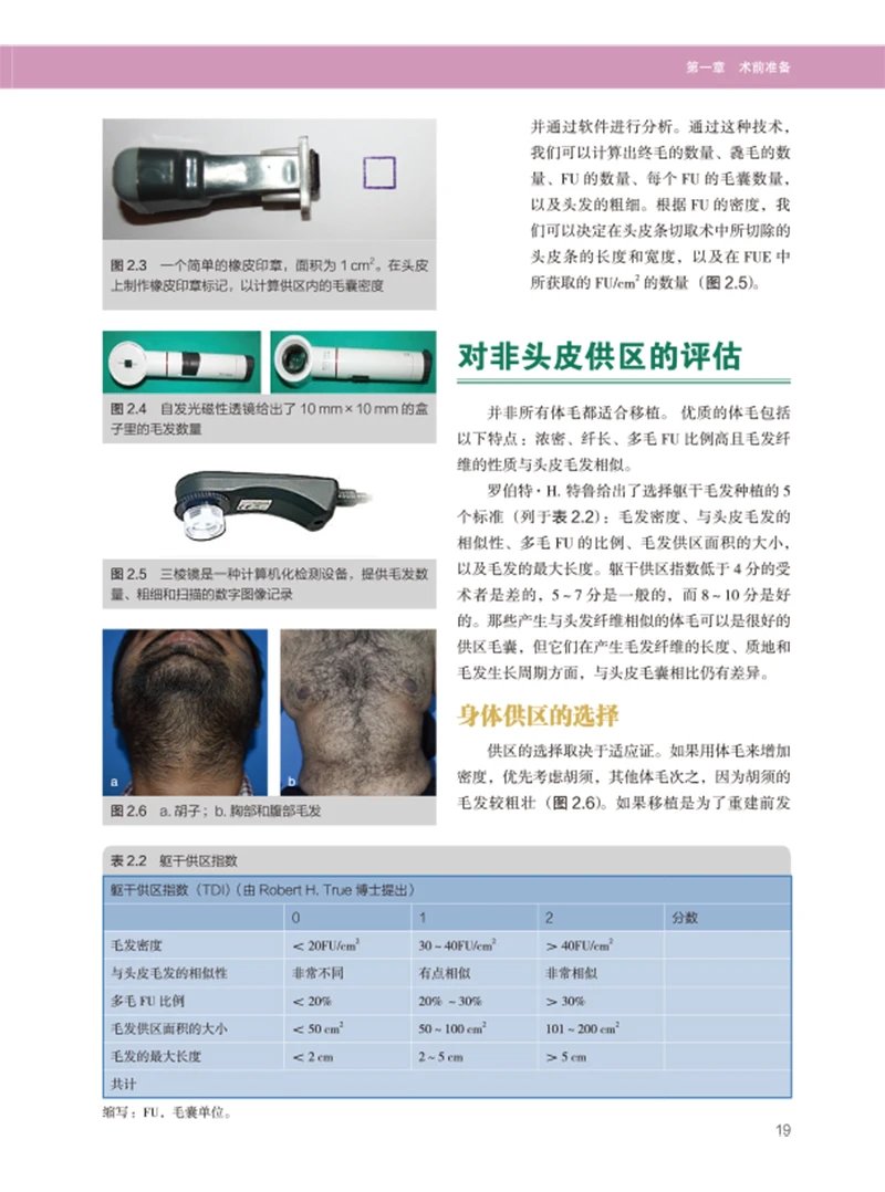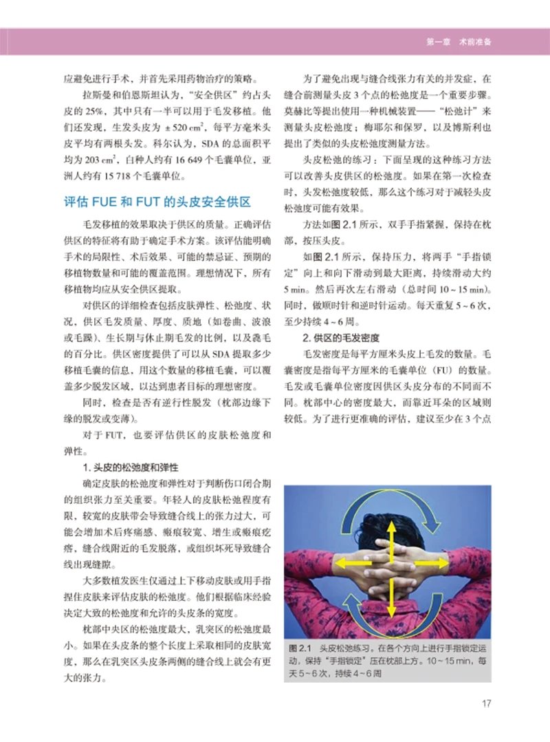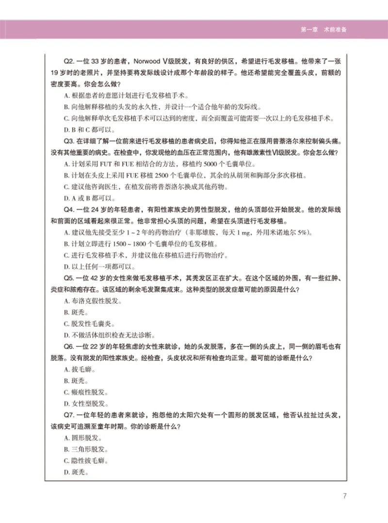 本书由国际上知名毛发移植医生编写,汇集了他们的临床经验,对毛发移植医生很有帮助。 (美)罗伯特 H 特鲁,美国纽约著名毛发移植专家。 (印)阿尼尔 K 加格,印度著名毛发移植专家,(印)西马 加格印度著名整形专家,尤其擅长毛发移植。主译:苗勇,南方医院整形美容外科博士、副主任医师,硕士生导师。目前主要从事于微创面部年轻化和自体毛发美学种植(包括:头发种植、眉毛种植、睫毛种植、胡须种植等)。尤其擅长各种毛发移植失败案例修复和疑难病症治疗等。 本书分为上下两册,本册为上册,分为3 章:第一章,介绍了如何通过医患沟通和患者检查为手术做准备、如何制定长期治疗计划、如何制定手术计划以及麻醉的一般原则。第二章提供非常详细的毛囊获取方法,包括毛囊单位移植术(FUT) 及毛囊单位提取术(FUE)。第三章重点介绍男性、女性和跨性别者毛发移植的设计要点及毛囊移植,描述毛囊保存的首选方法。 本册是下册的基础,与下册内容可分开阅读,但若想掌握毛发移植的操作,上下两册都需要学习。本册配有视频,可以在THIEME官方网站上观看,视频详细讲解了毛发移植的具体操作,对理解术中的文字内容非常有帮助。