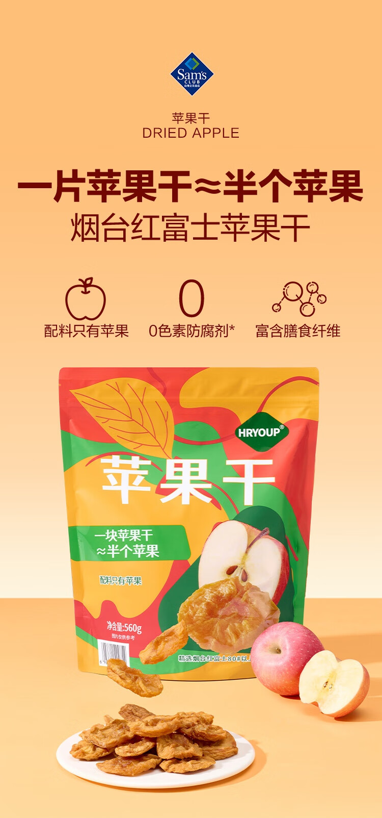 【山姆限定】HRYOUP 烟台红富士苹果干 16g/小袋