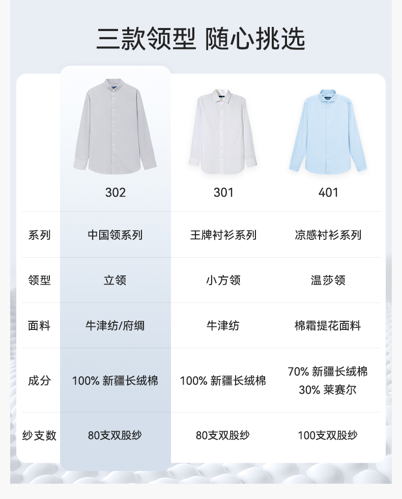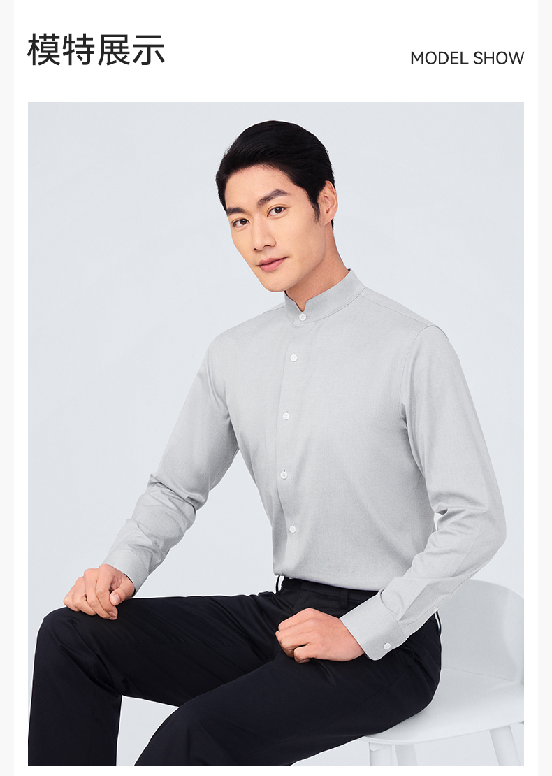 十如仕100%新疆长绒棉中国领牛津纺长袖衬衫-302-03/04