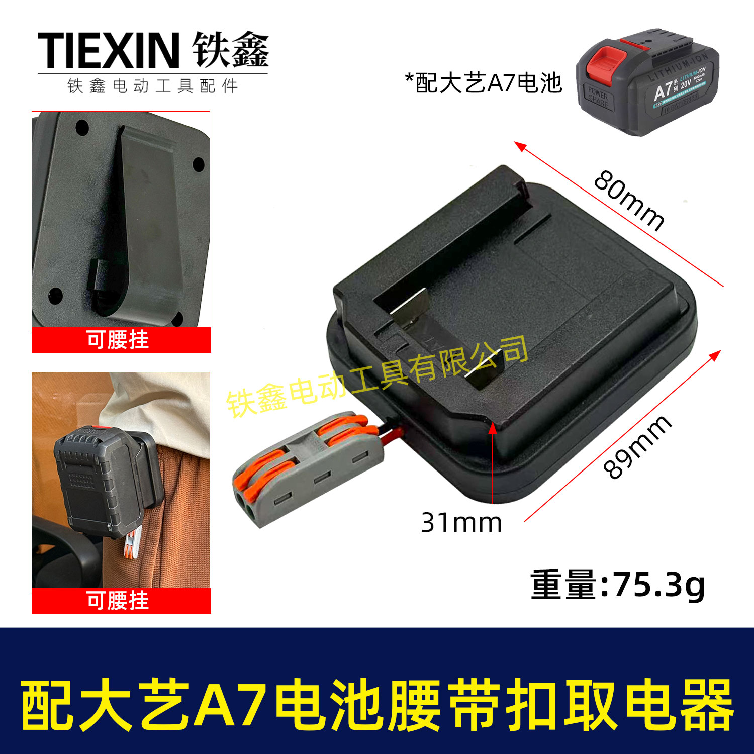 【货号07242】适配大艺A7电池腰带扣取电器电池固定架电池放电器锂电池腰带固定架子