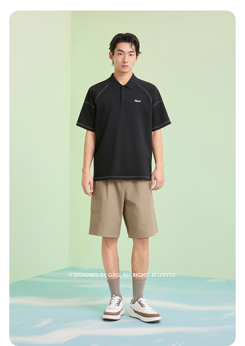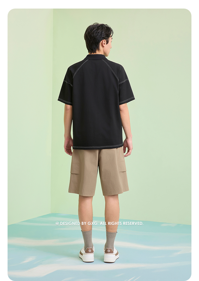 GXG男装 明线设计翻领POLO衫通勤休闲短袖上衣 2025夏季新品