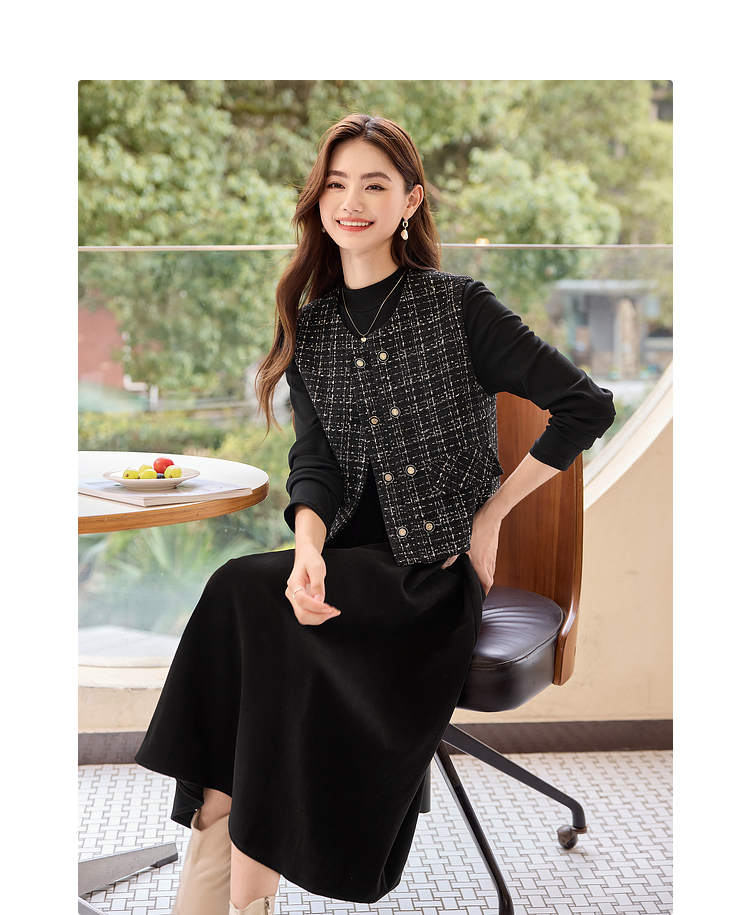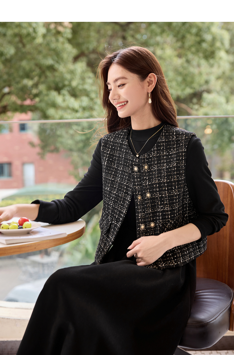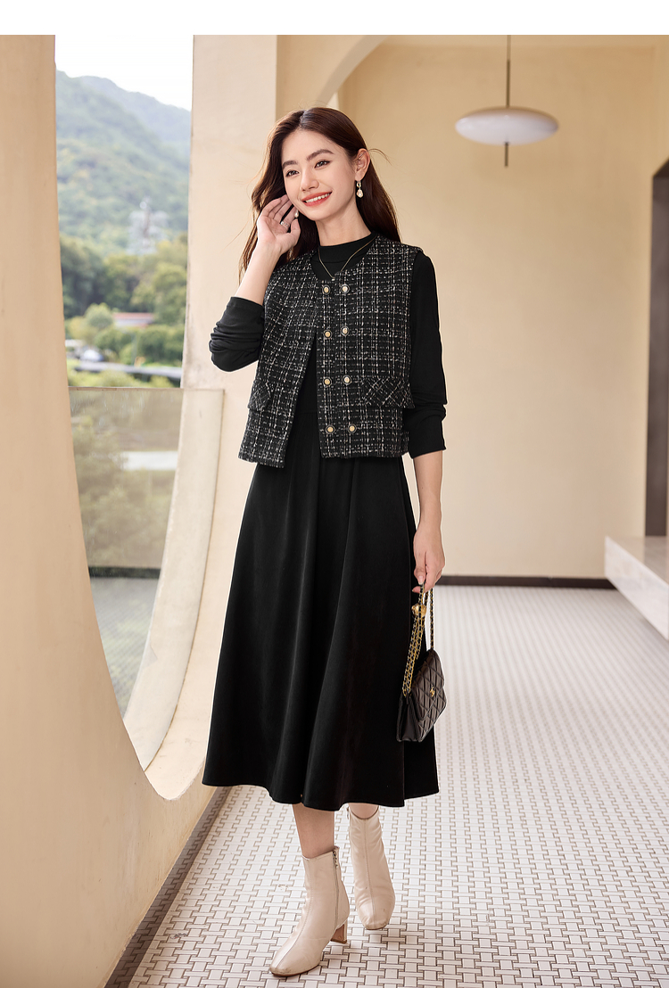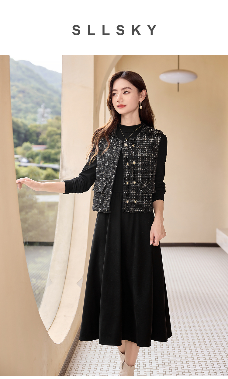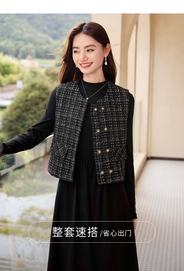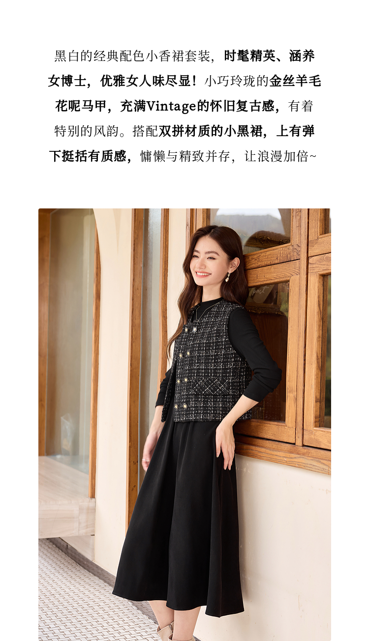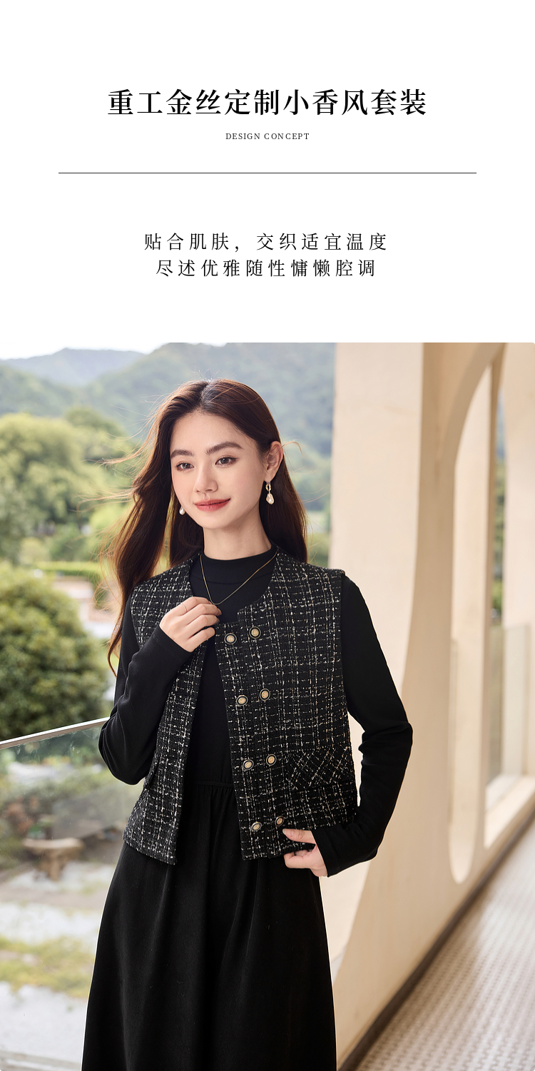 【专属特价】熙世界入秋穿搭一整套法式小香风马甲连衣裙两件套装女2025秋新款