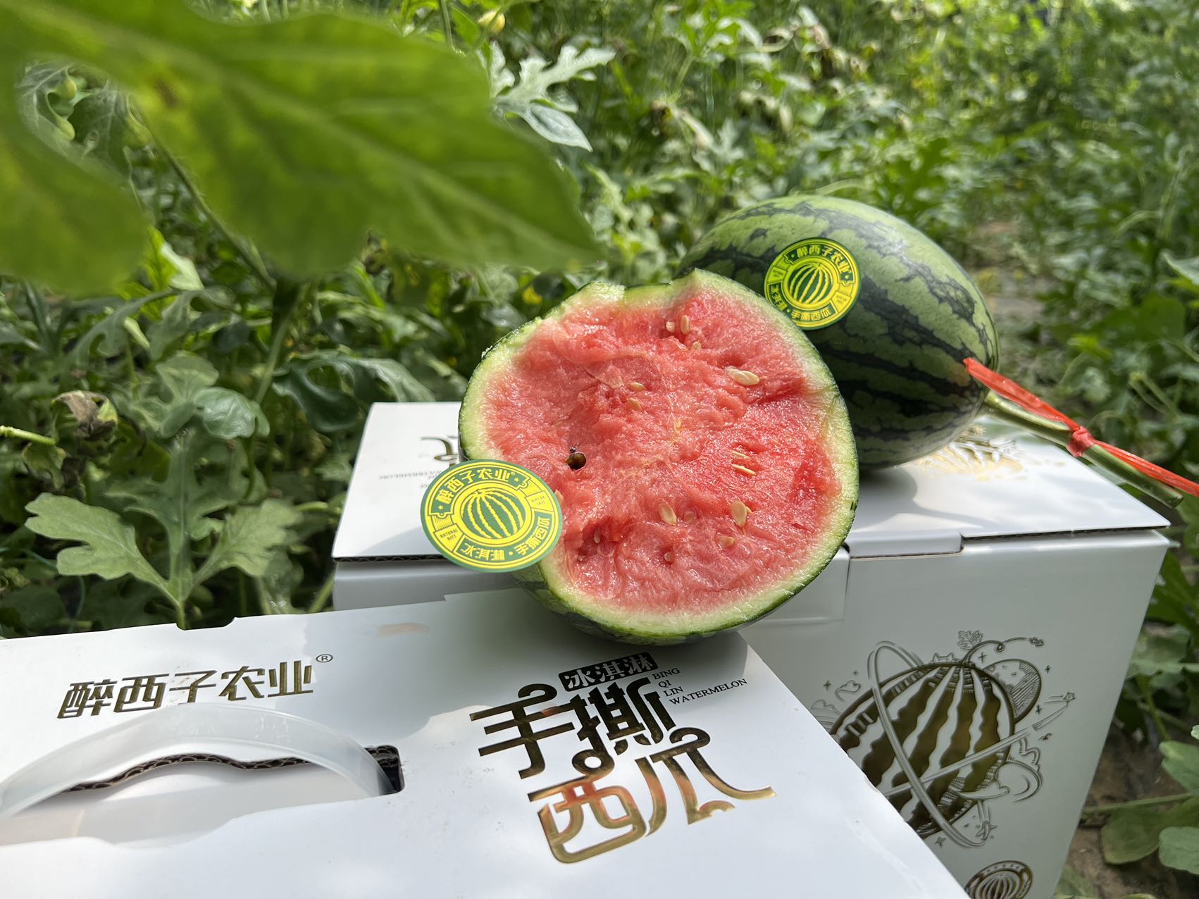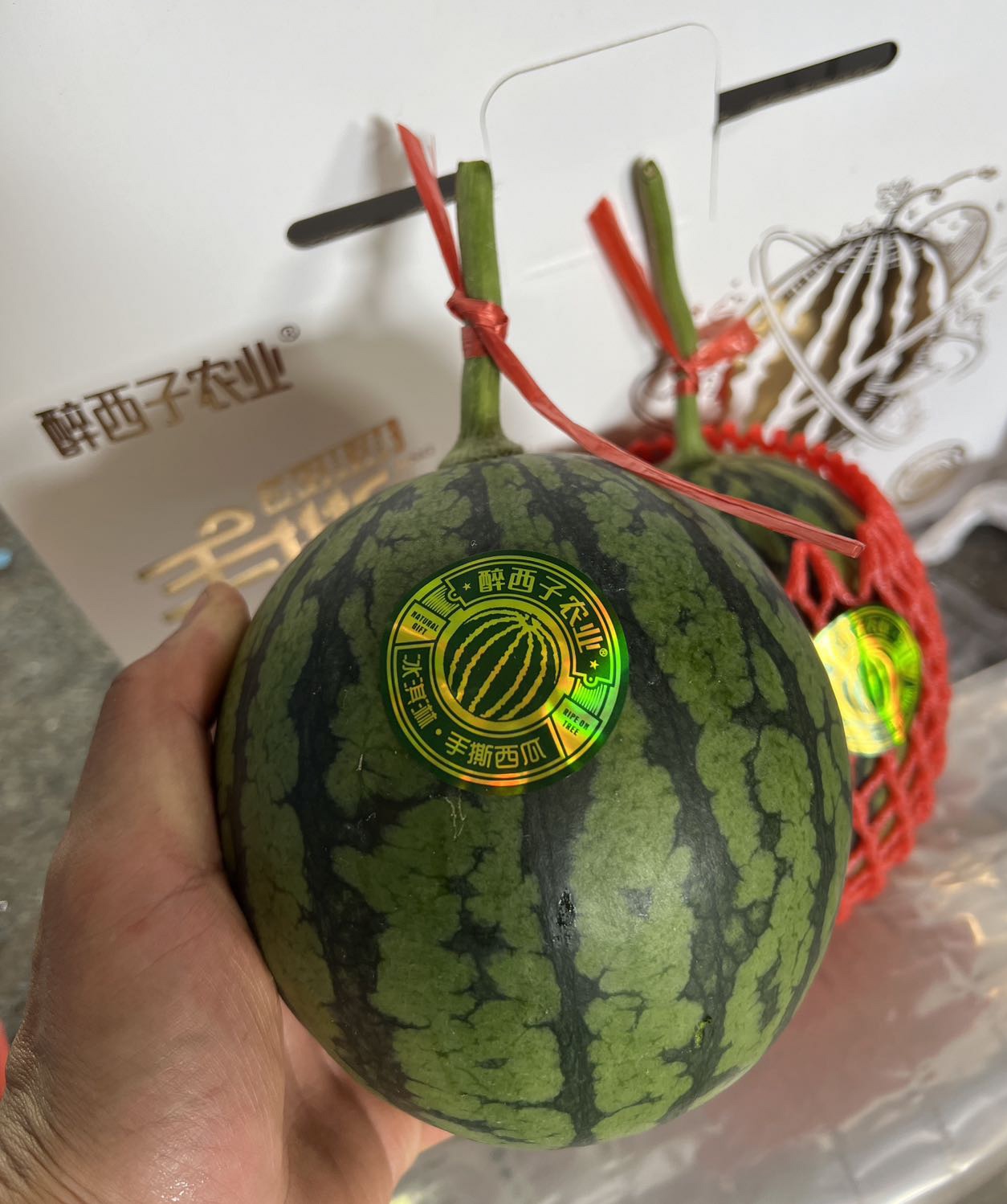 石家庄优选仓库速达,山东冰激凌手撕小西瓜,可以徒手剥皮,皮薄且脆,吊瓜种植,净重5.2斤左右/2枚礼盒装