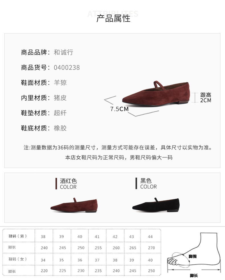 和诚行 2024秋冬新款法式复古玛丽珍单鞋百搭女浅口平底鞋0400238