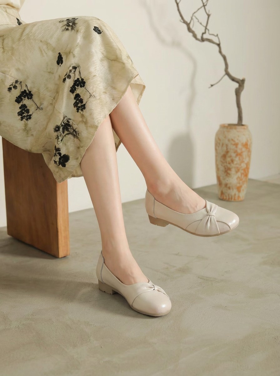 【牛皮革】西村名物2026年春季新款软底软面舒适百搭低跟浅口单鞋T26AE17341