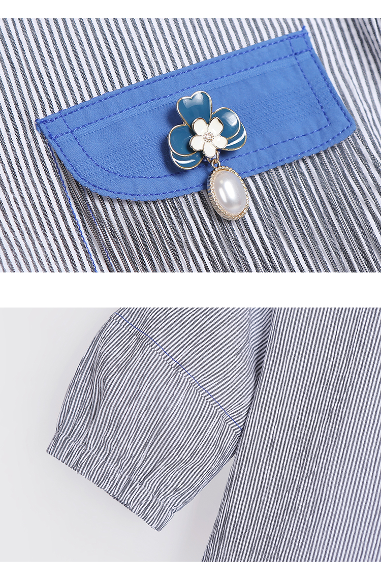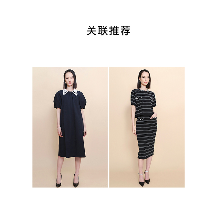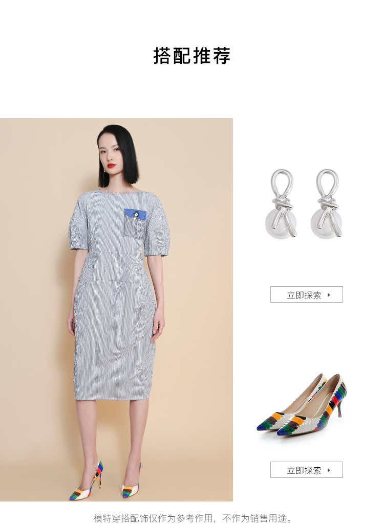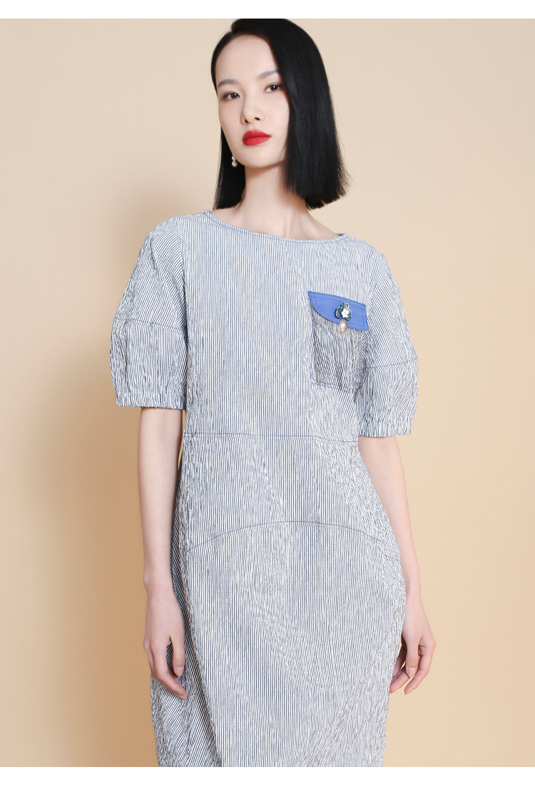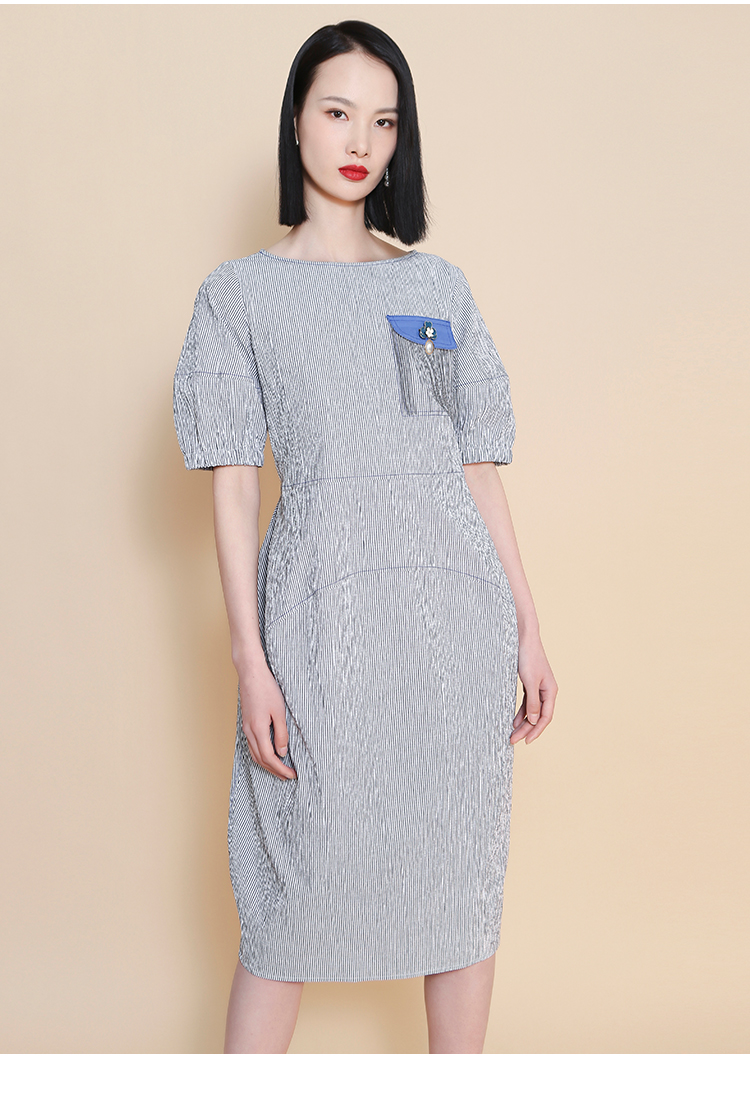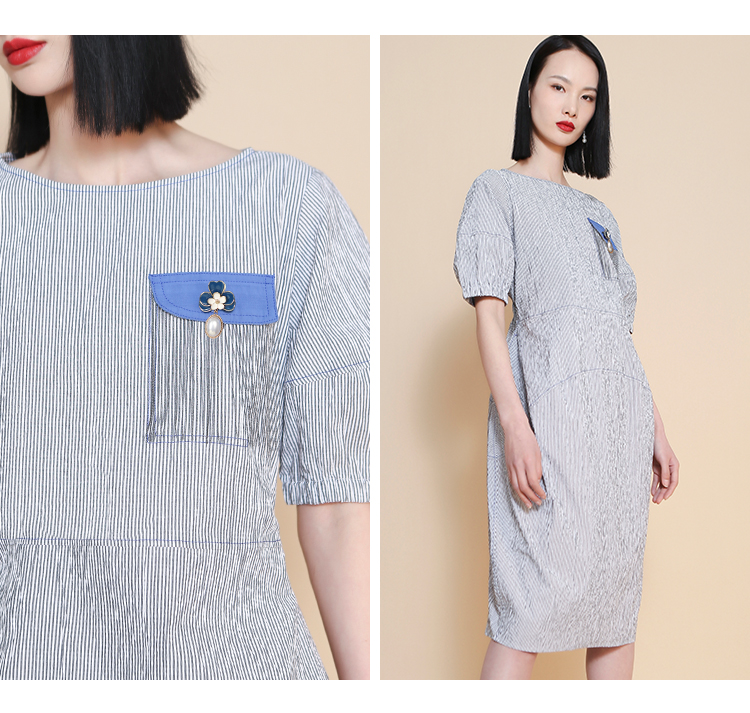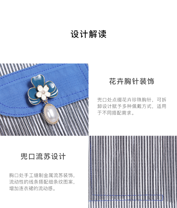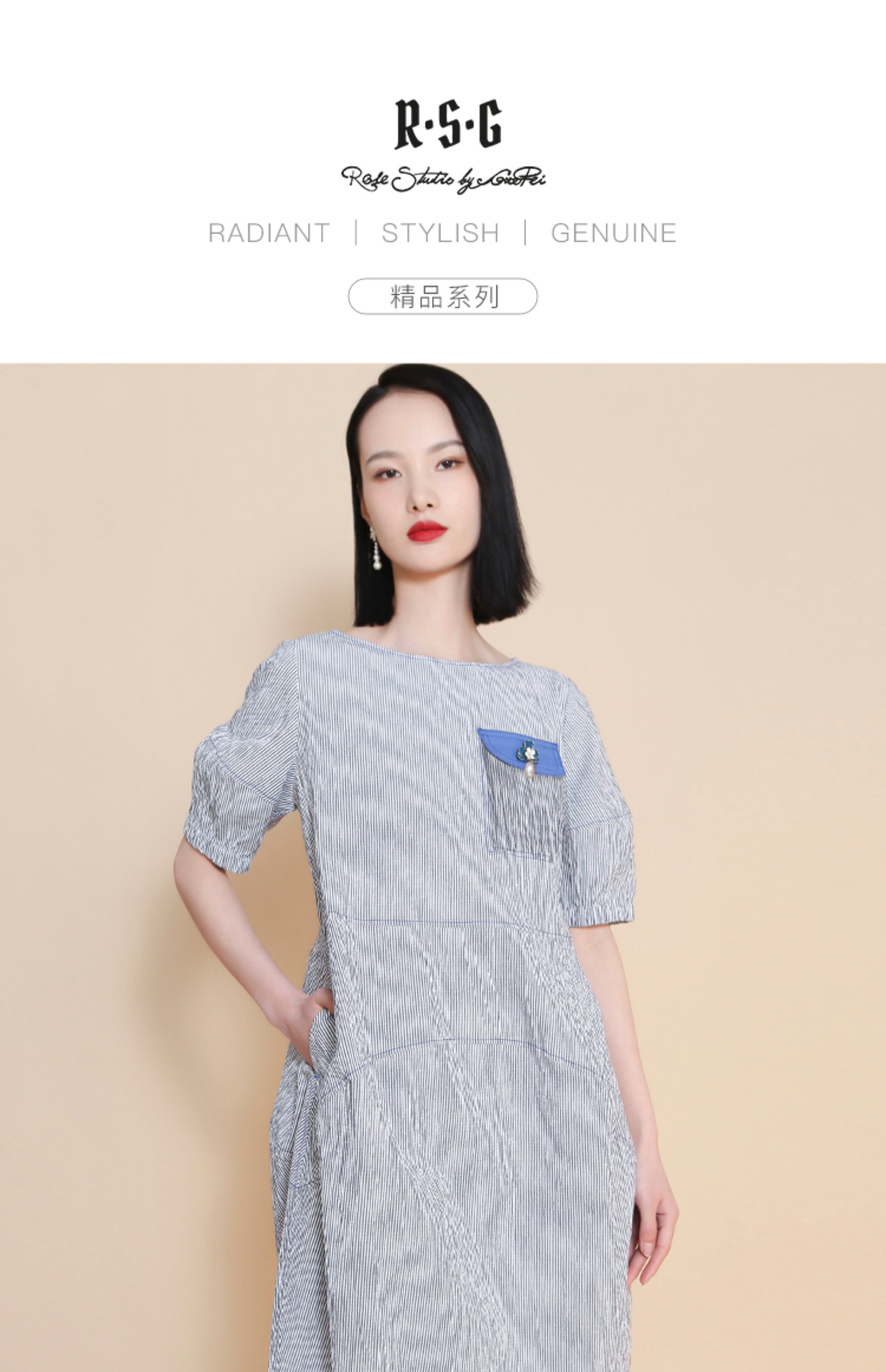 RSG郭培成衣品牌流苏花卉胸针竖条纹显瘦连衣裙修身夏季