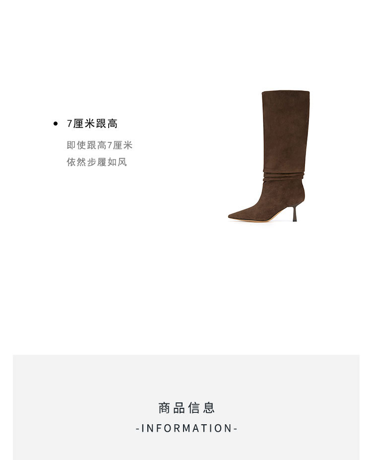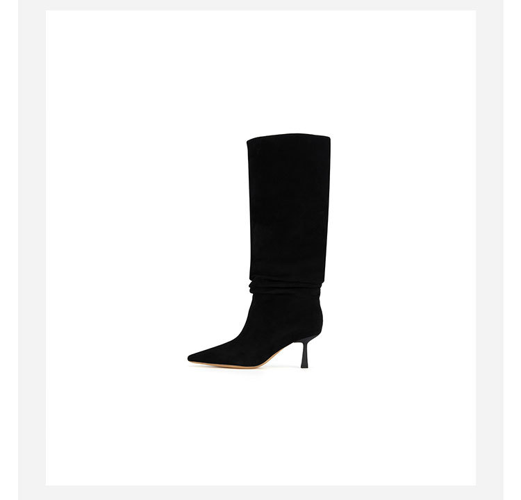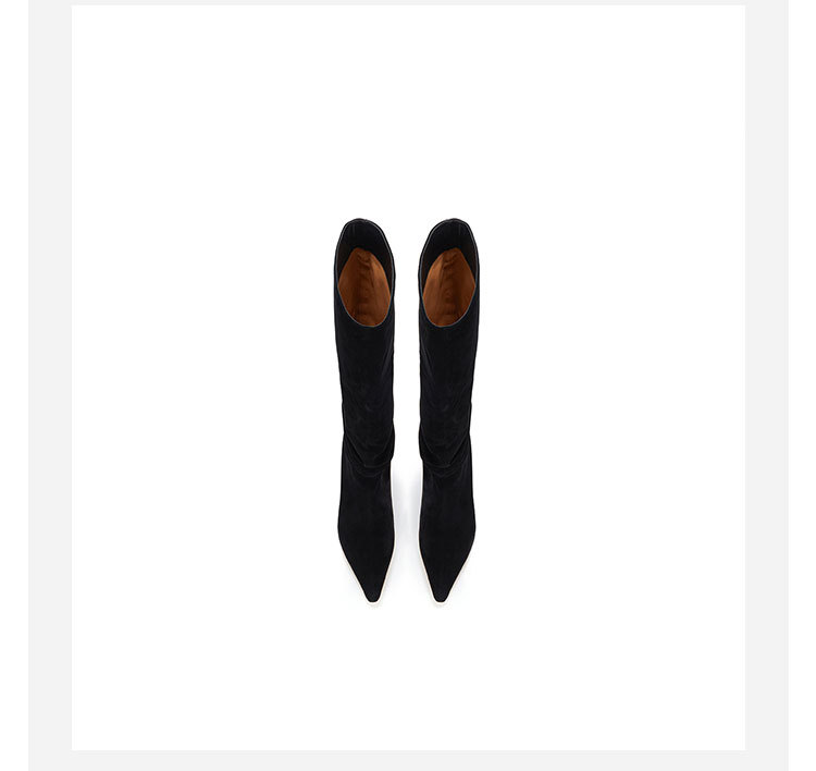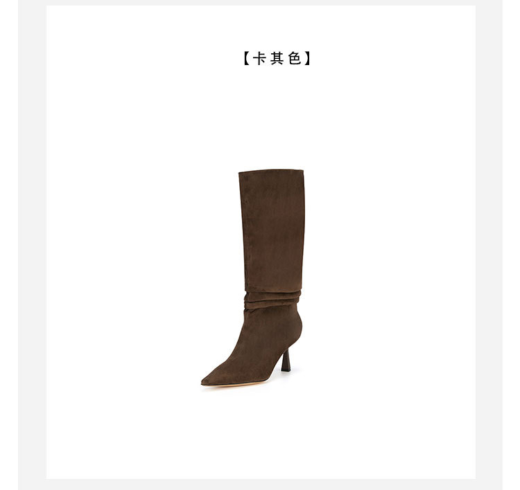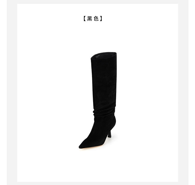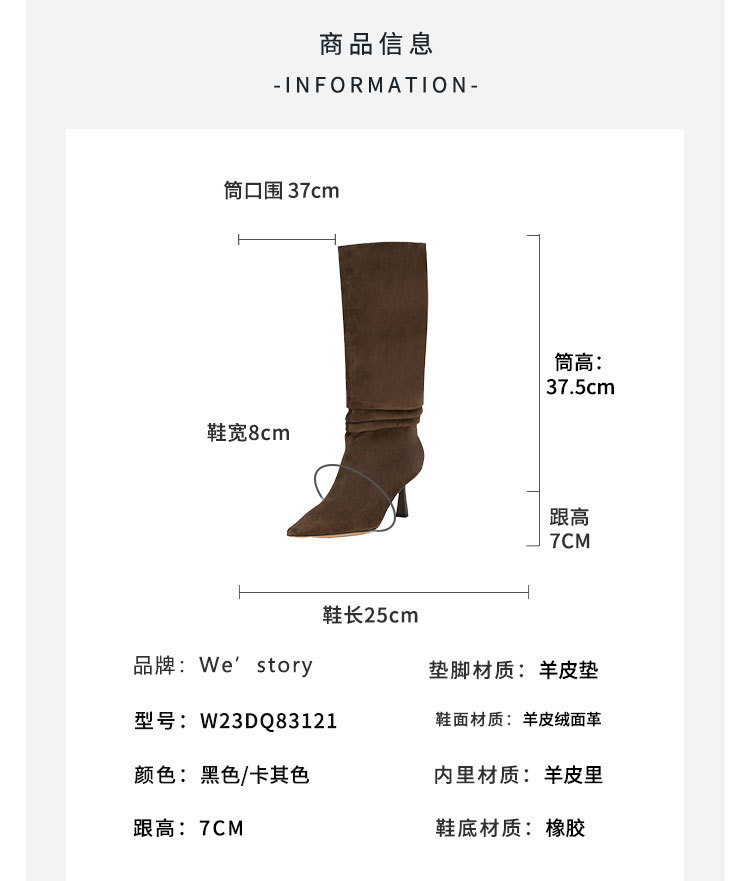 westory2023秋季新品尖头高跟长靴过膝高筒靴细跟堆堆单靴W23DQ83121