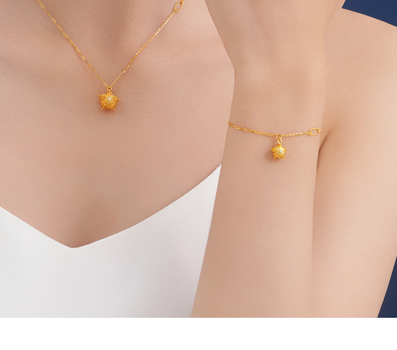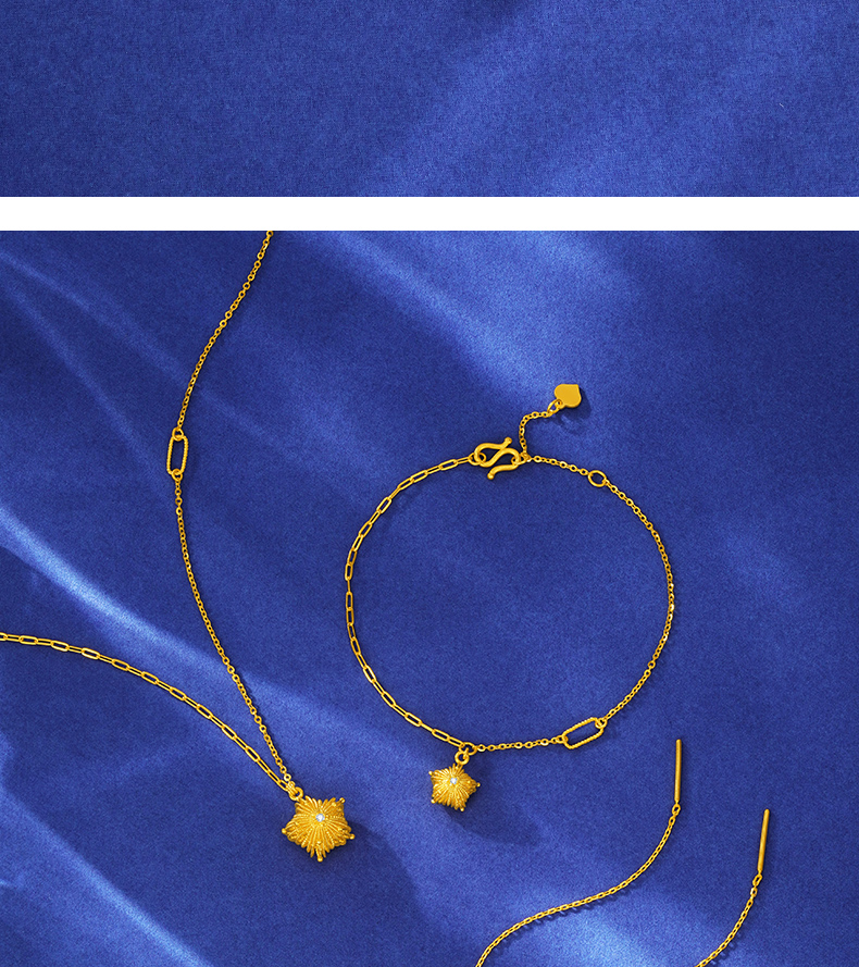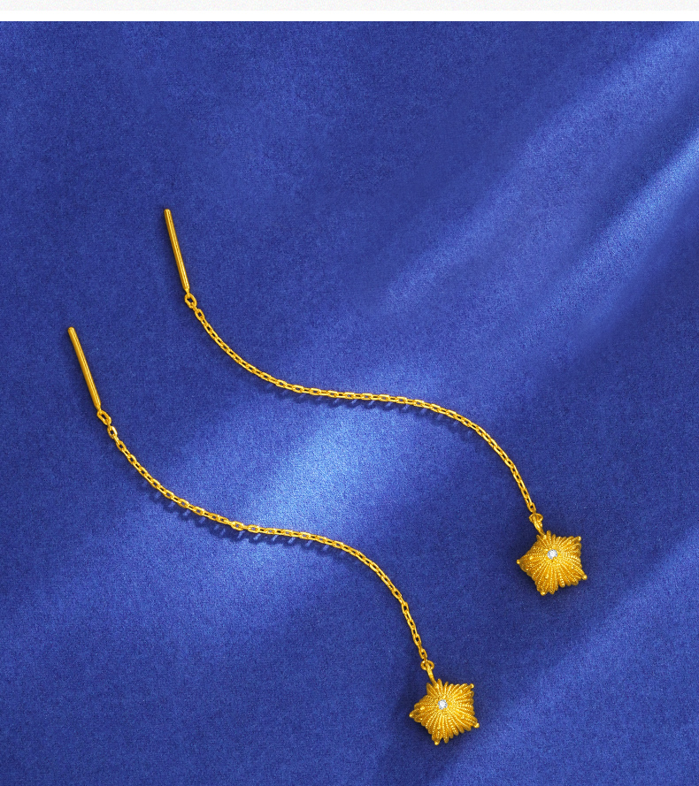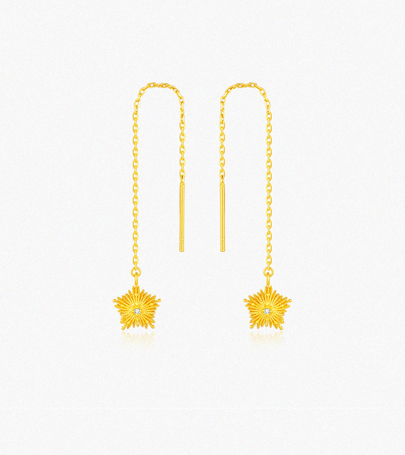 「LOVESTAR-爱的礼物」黄金炽爱星芒耳饰 钻石星星花丝工艺项链【Y】