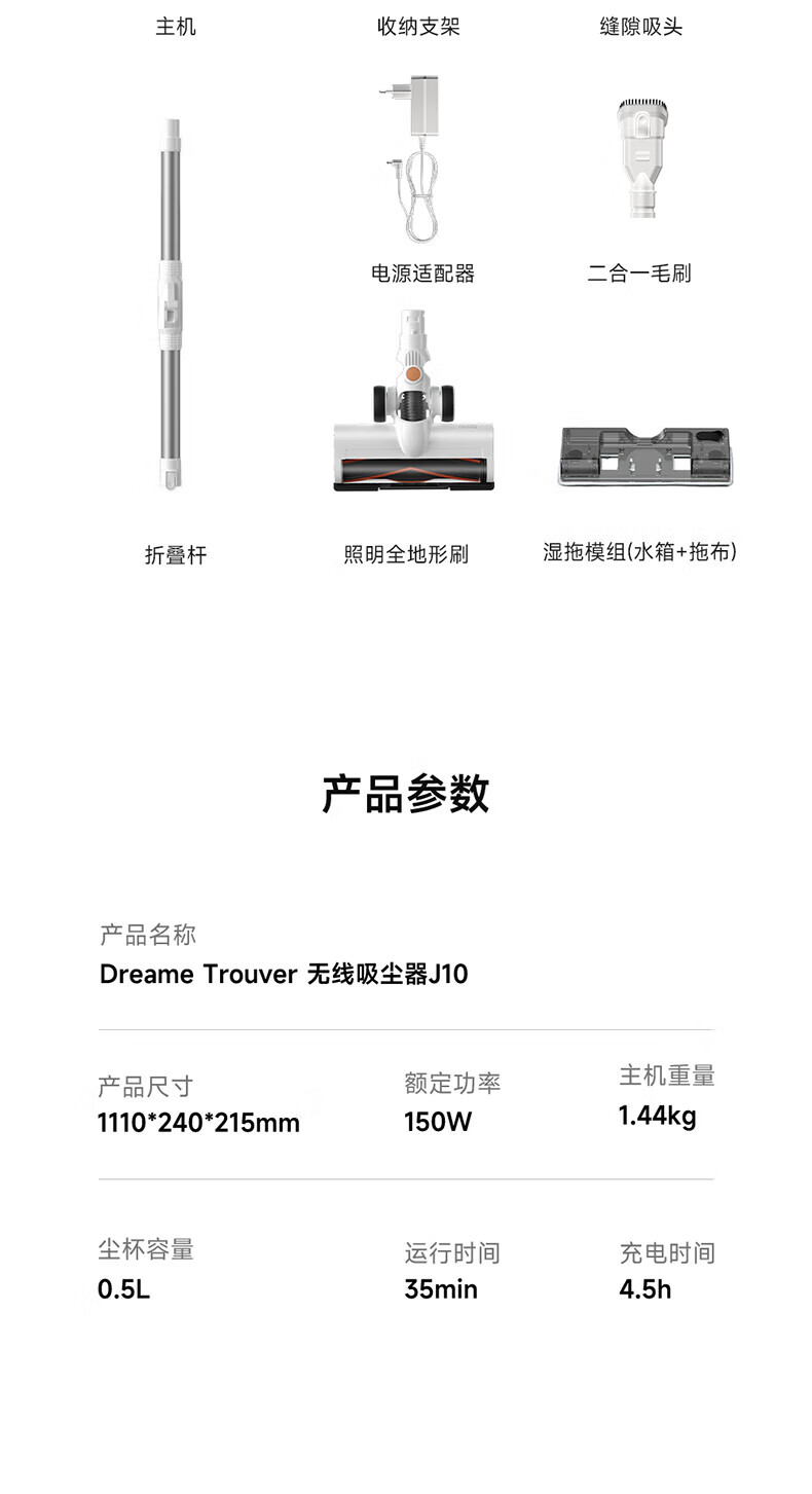 追觅_Mova大未无线吸尘器_长续航_折叠金属杆_家庭宠物使用追_觅Dreame_J10【新】