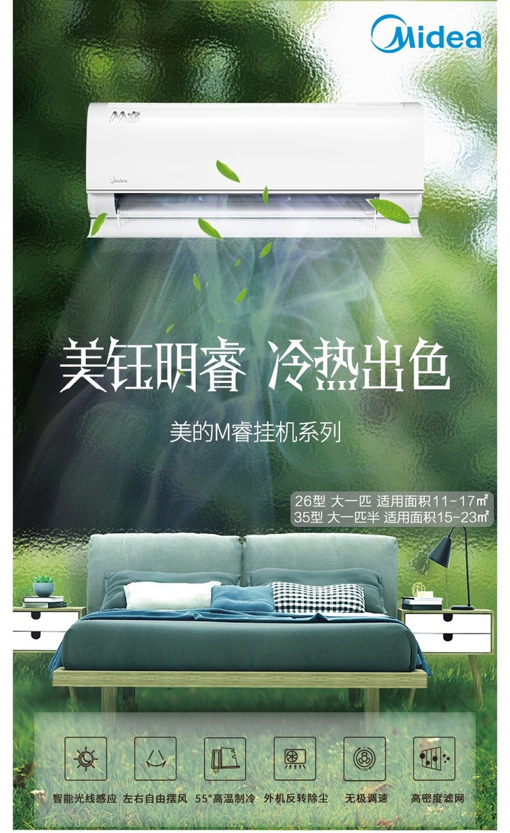 美的空调ya102 级能效全直流变频空调挂机壁挂式卧室冷暖M睿WiFi智能
