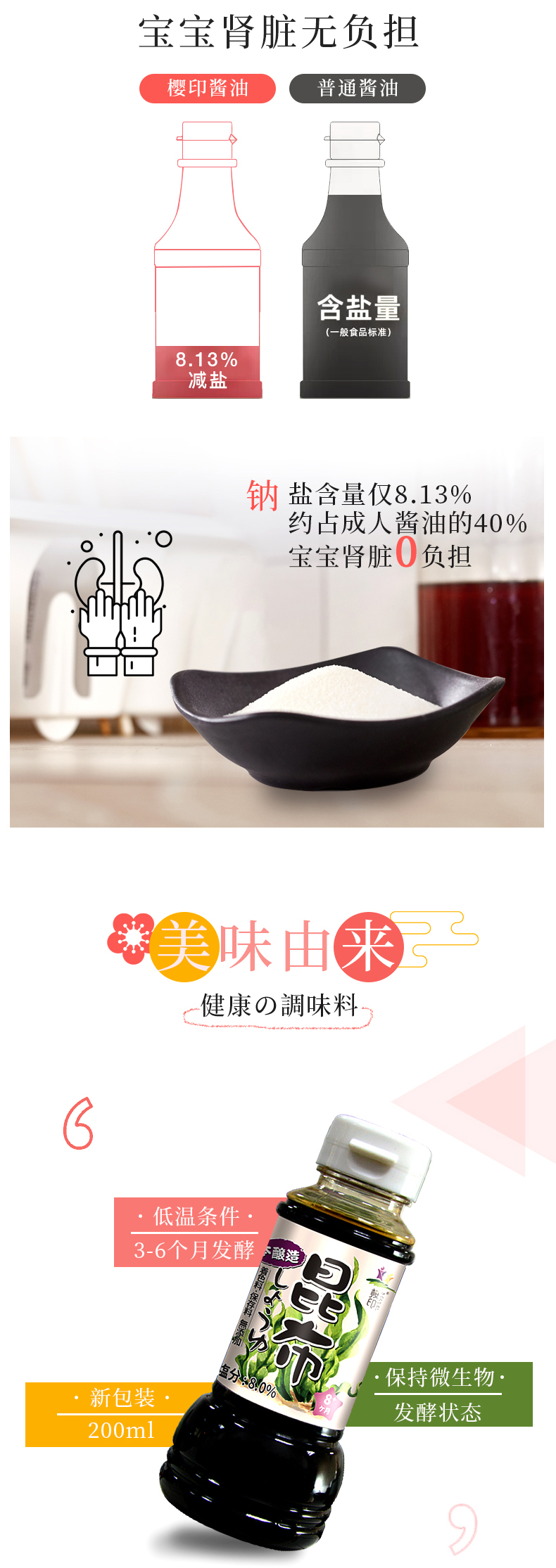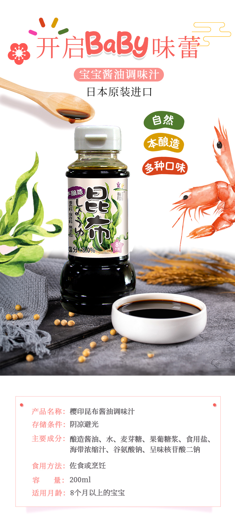 樱印(桜印)日本原装进口宝宝儿童辅食昆布酱油调味汁200ml/瓶