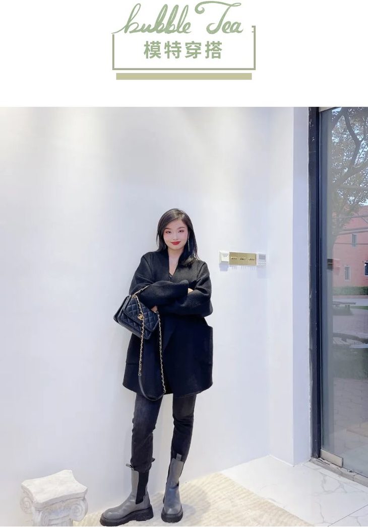 长长的大衣里微露的小腿,显得腿部特别修长,时髦感上了一个LEVEL。