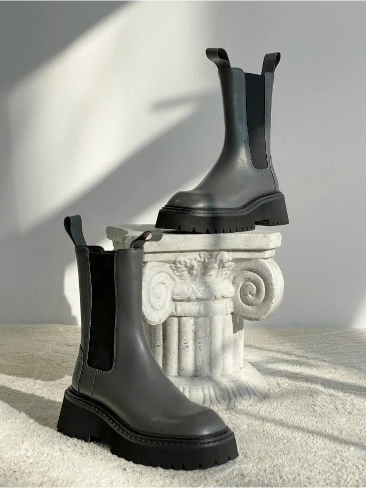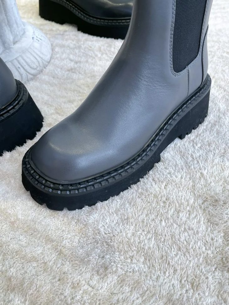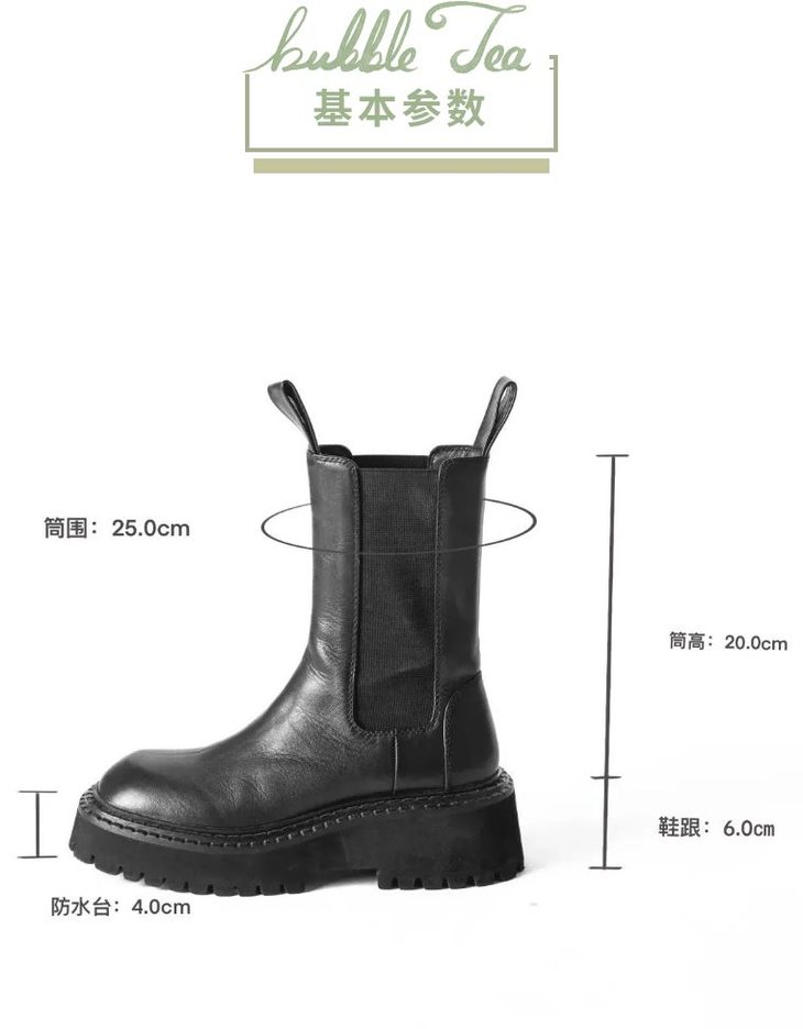 【断码特惠不退换】厚底英伦风切尔西烟 筒靴丨头层牛皮 透气佳 圆头设计不挑脚型 6cm后跟 拔高身型 平底鞋一样的脚感 松紧带设计穿脱自如 tory-bur*ch等轻奢品牌代工厂定制款