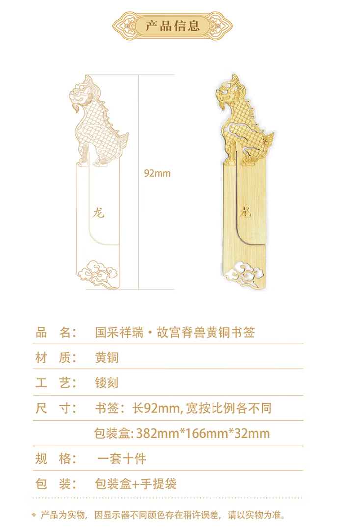脊兽黄铜书签礼盒10支装