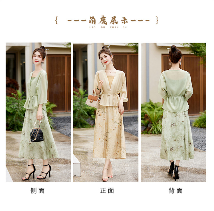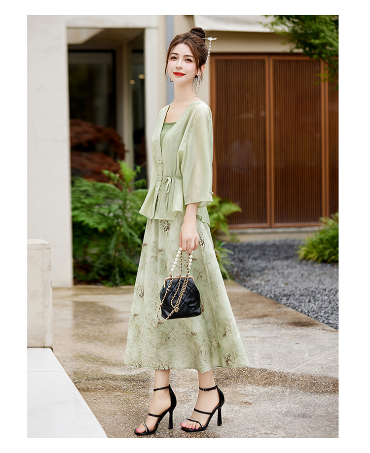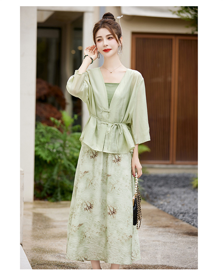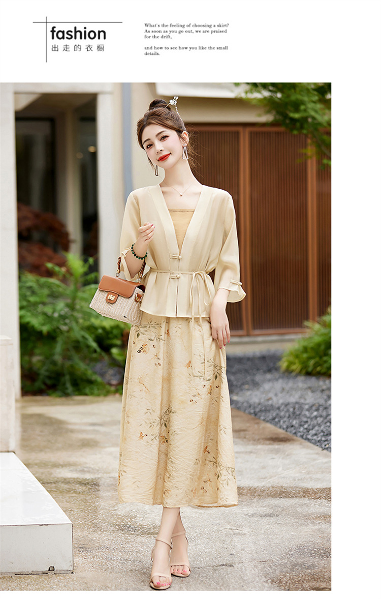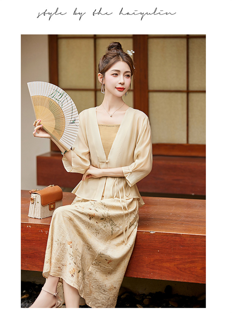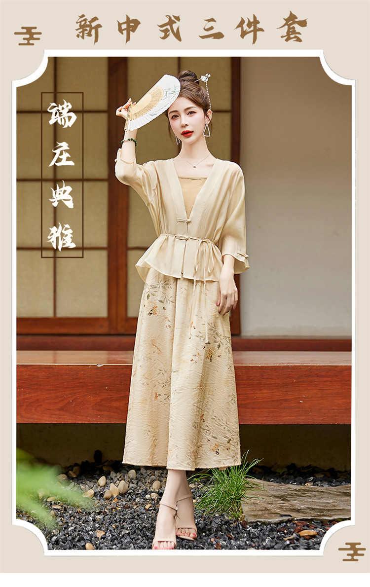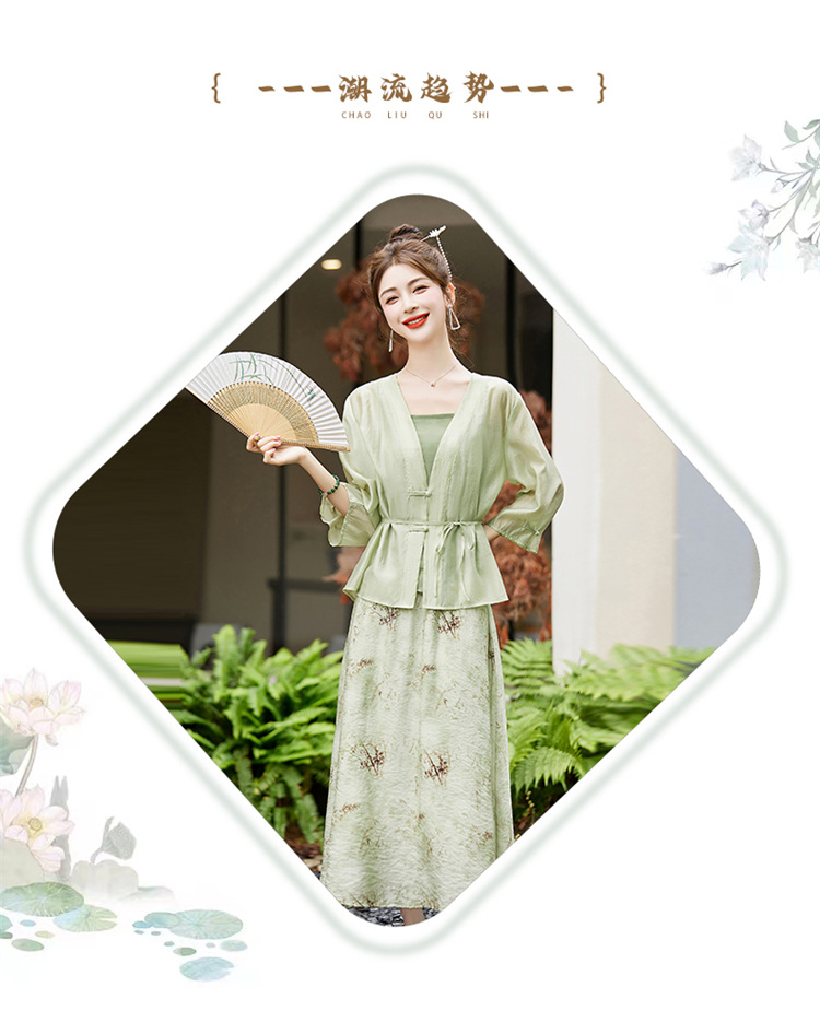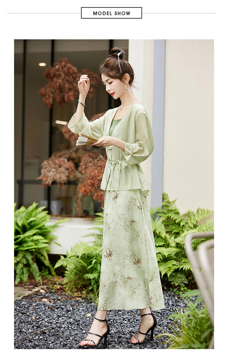 新中式复古印花夏新款百搭吊带背心半身裙三件套HR-EHJY3129