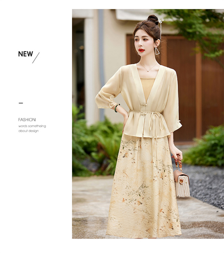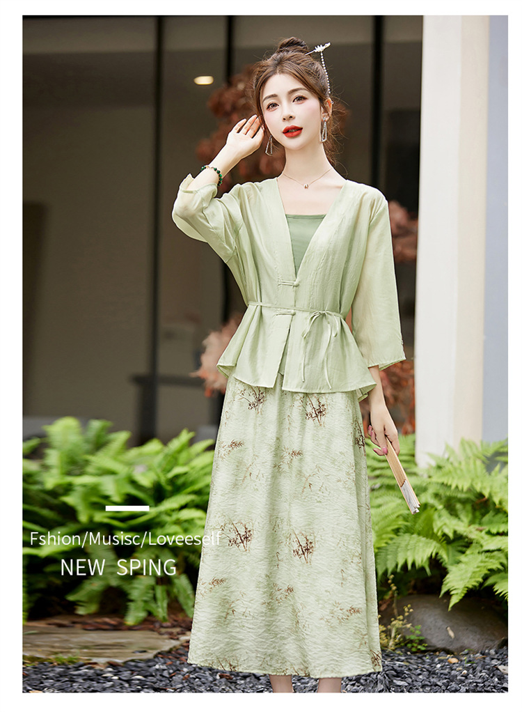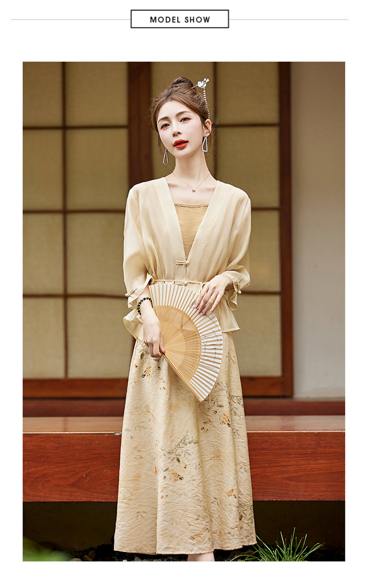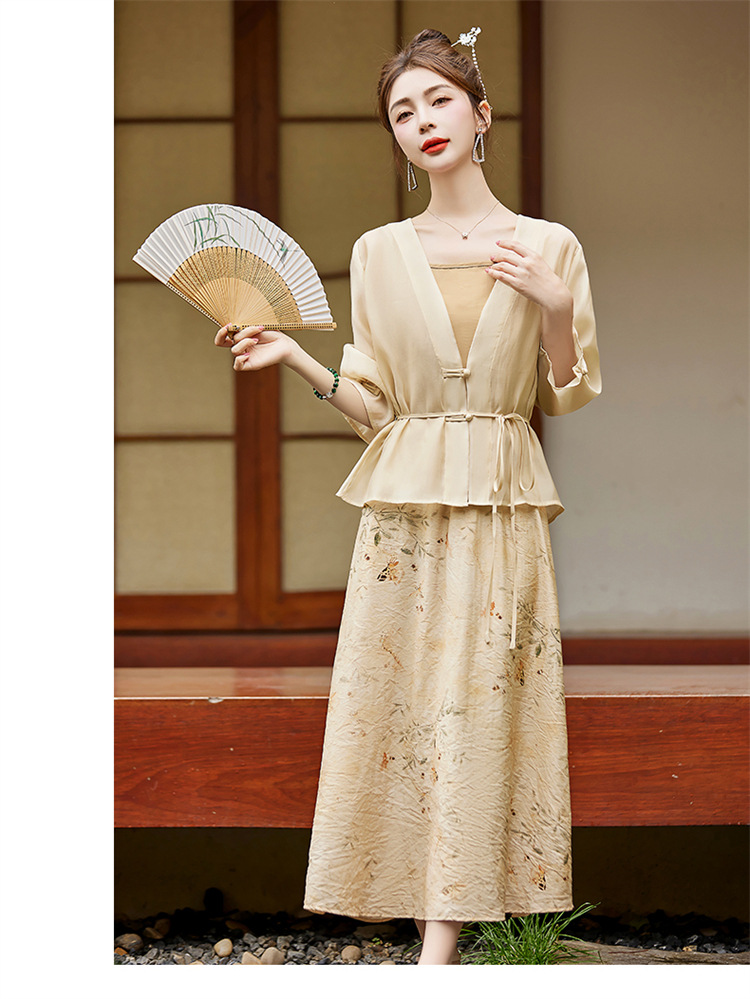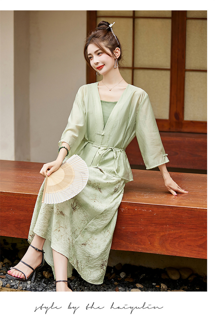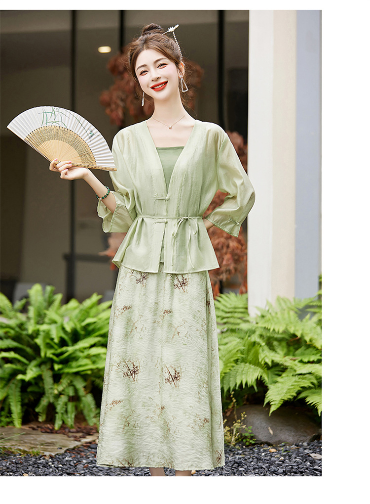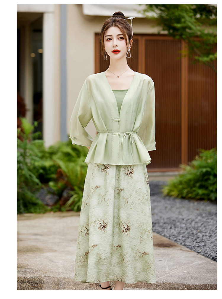 新中式复古印花夏新款百搭吊带背心半身裙三件套HR-EHJY3129