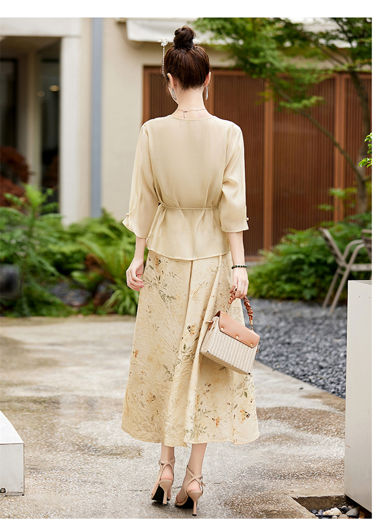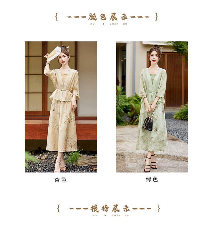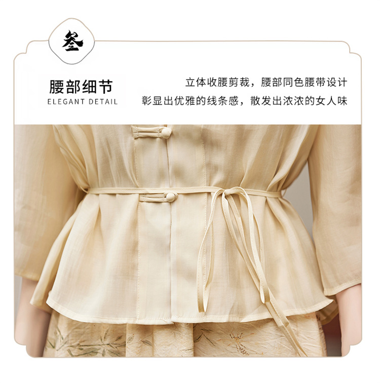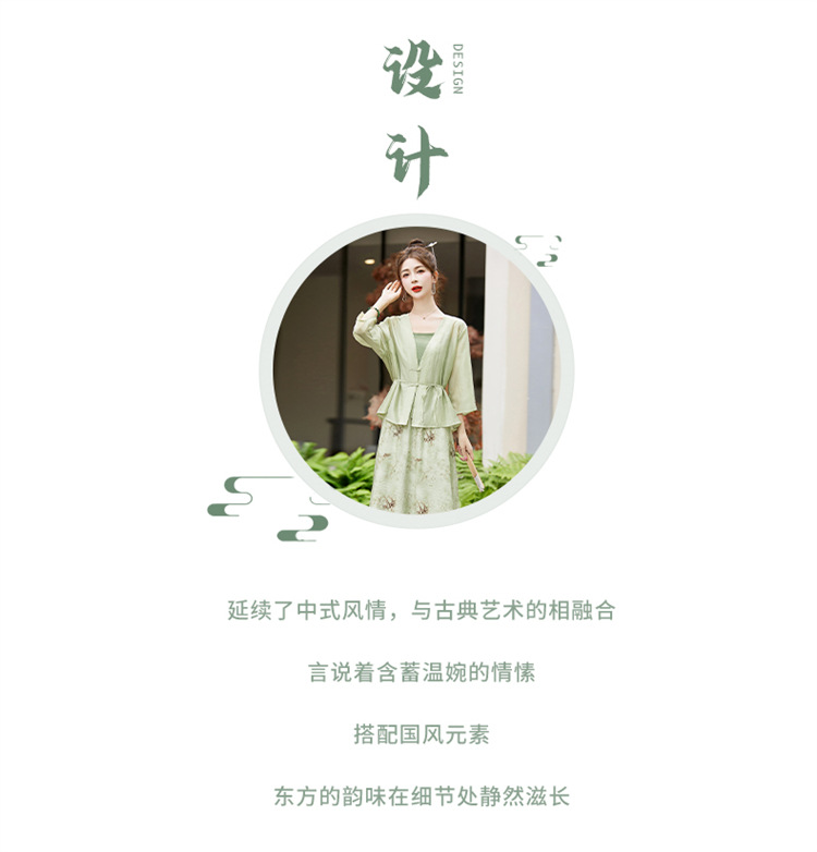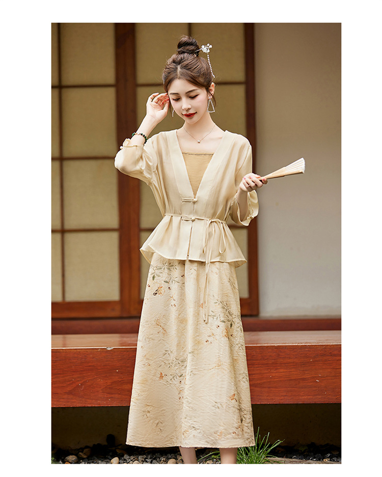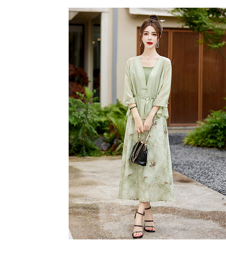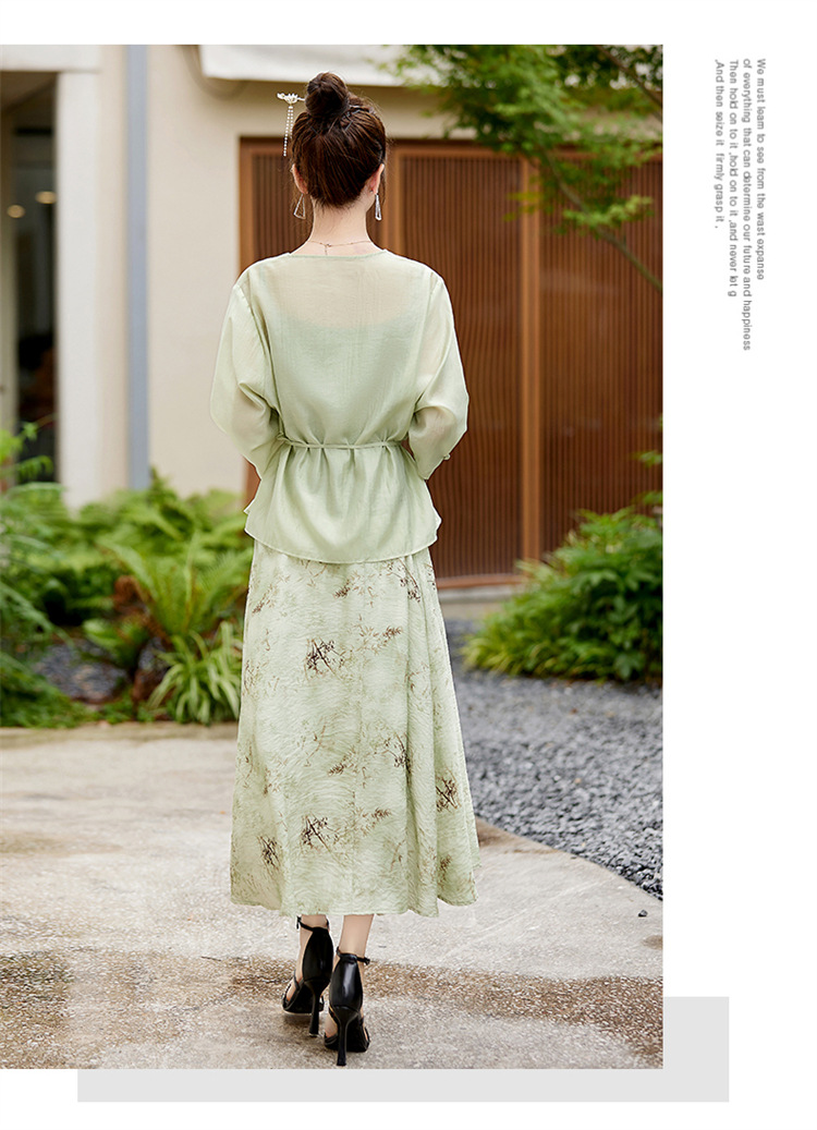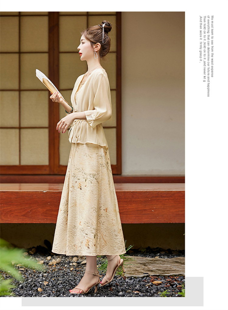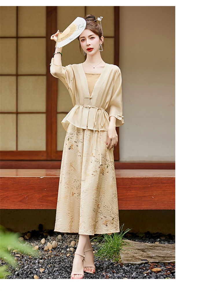 新中式复古印花夏新款百搭吊带背心半身裙三件套HR-EHJY3129