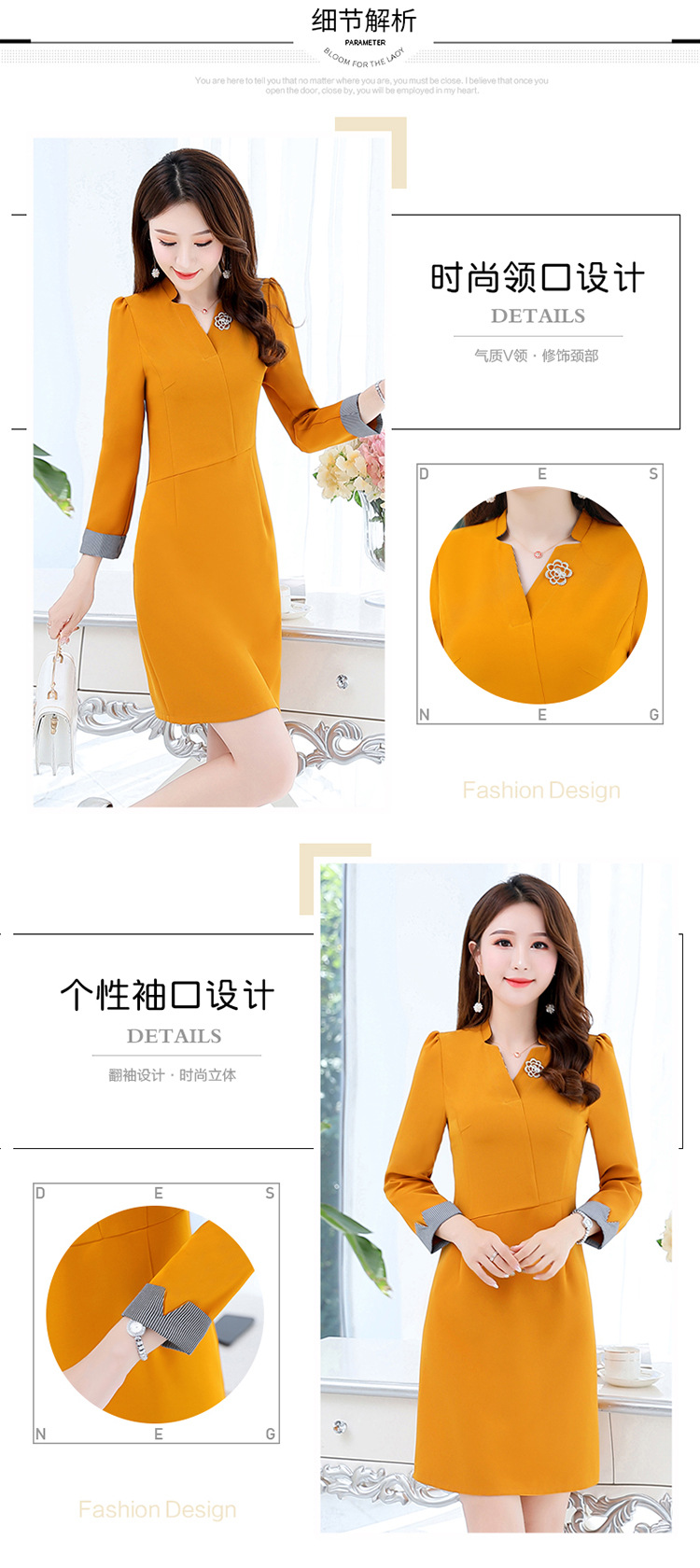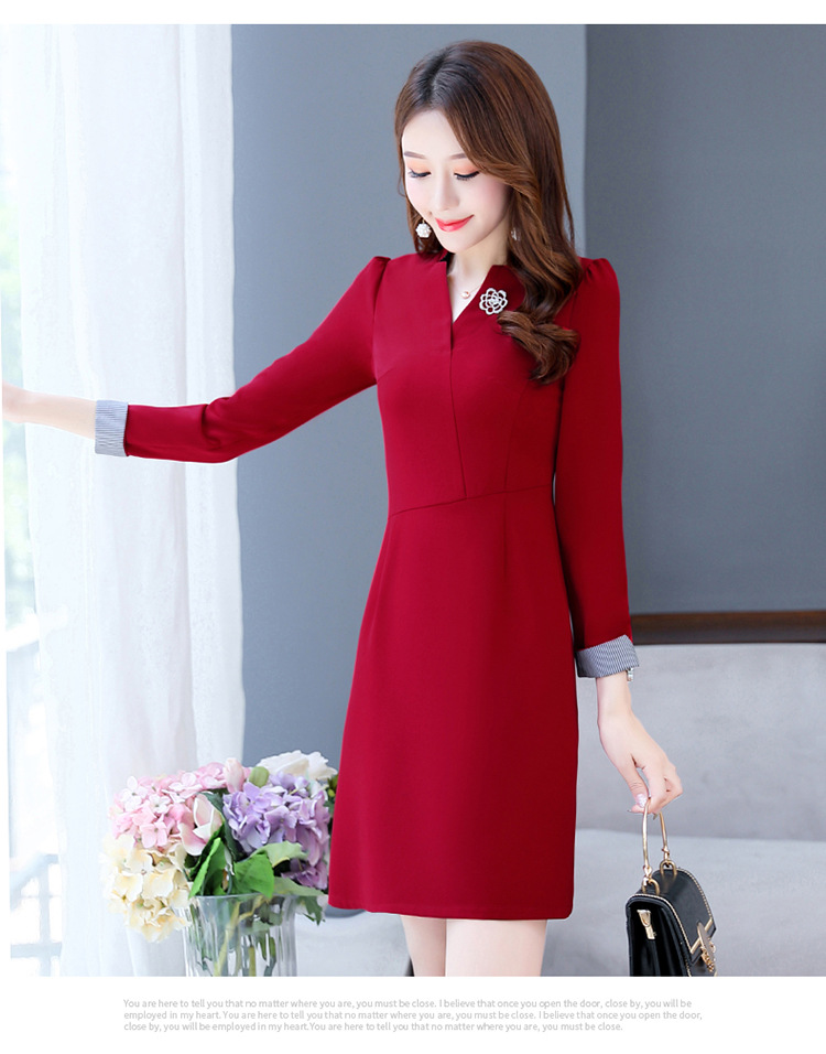 气质V领,修身小个子职业装包臀一步裙HR-XXM2037