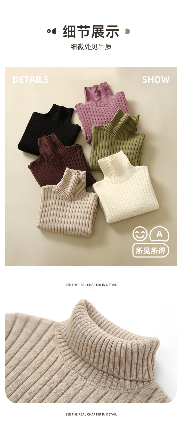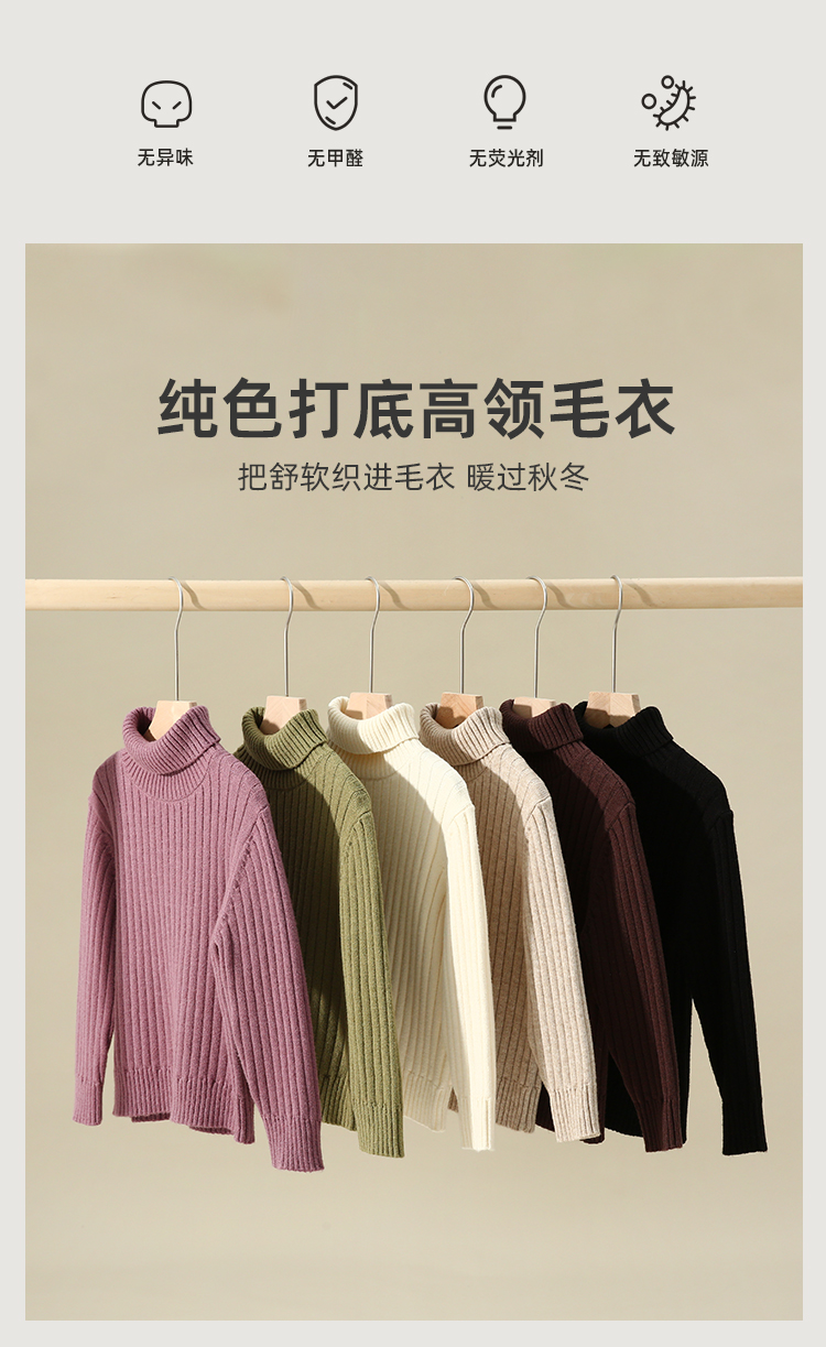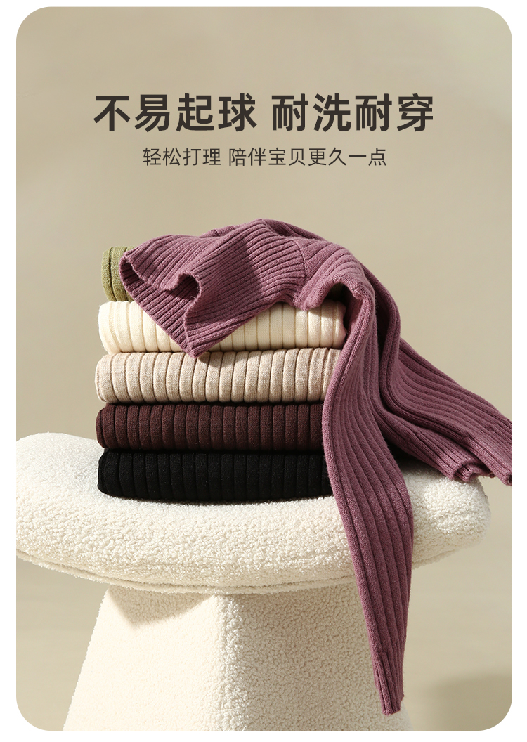 【品牌优选】【坑条针织 软糯包芯纱】百搭纯色打底高领毛衣PDMY2242