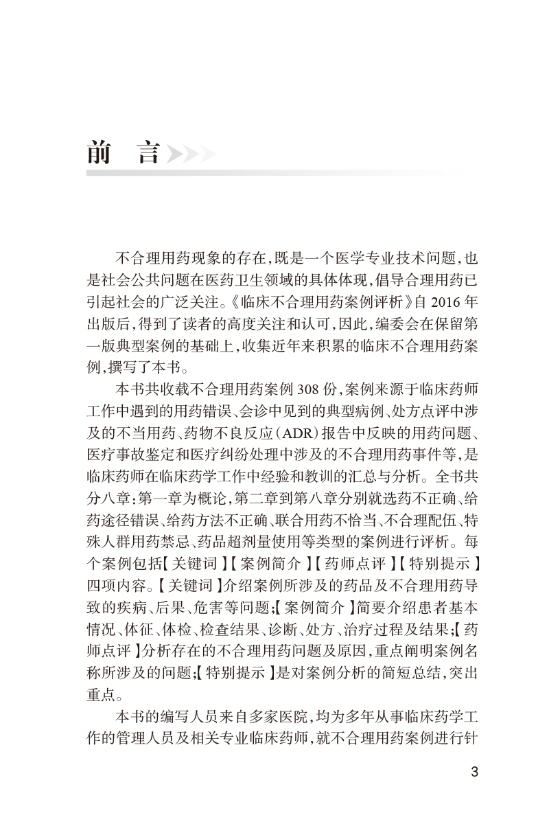 内容提要:修订的总体框架保持不变,对每个案例仍从【关键词】【案例简介】【药师点评】【特别提示】等方面进行评析。根据近年来临床工作中遇到的用药错误、会诊中见到的典型病例、处方点评中涉及的不当用药、不良反应报告中反映出的用药问题等收集新的经典案例,同时对原有的140个案例中不再具备典型性或代表性的案例进行删掉。